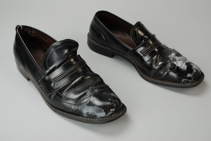 Paar herenschoenen van zwart imitatie lakleer met wr...