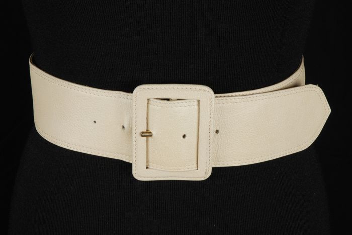 Brede ceintuur van beige kunstleer met grote vierkan...
