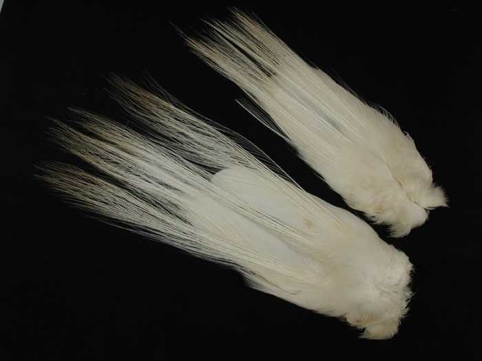 Twee lange verendecoraties van witte reigerveren, de...