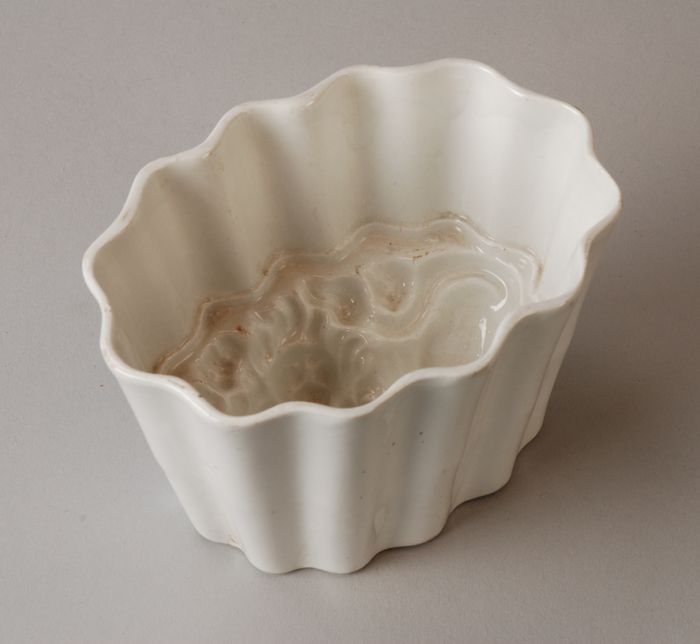 Wit geglazuurde ovale puddingvorm met gegolfde wand ...