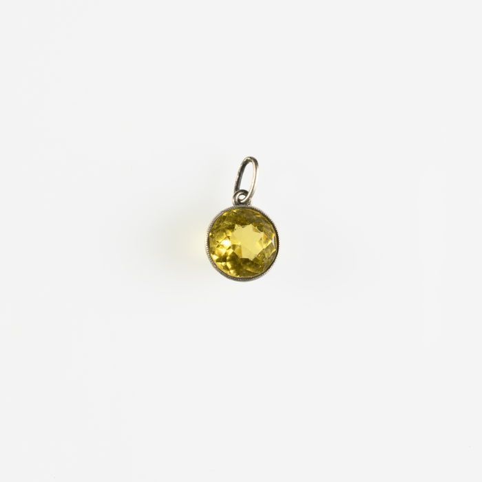 Mosterdpot met oor en deksel, gegraveerd met engelen...