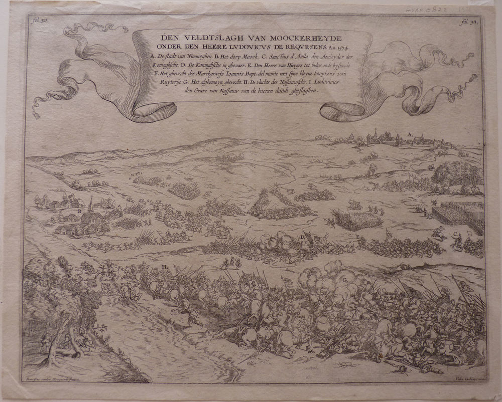 Gravure "Den Veldslagh van Moockerheyde" op papier g...
