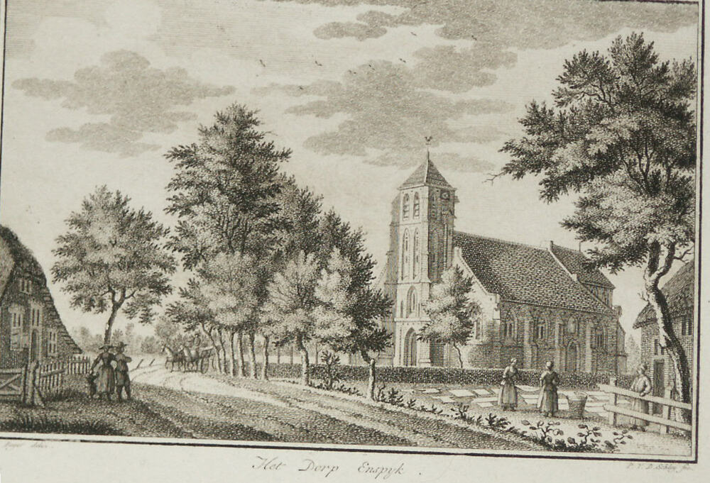 Gravure voorstellende Het Dorp Espijk, naar een teke...