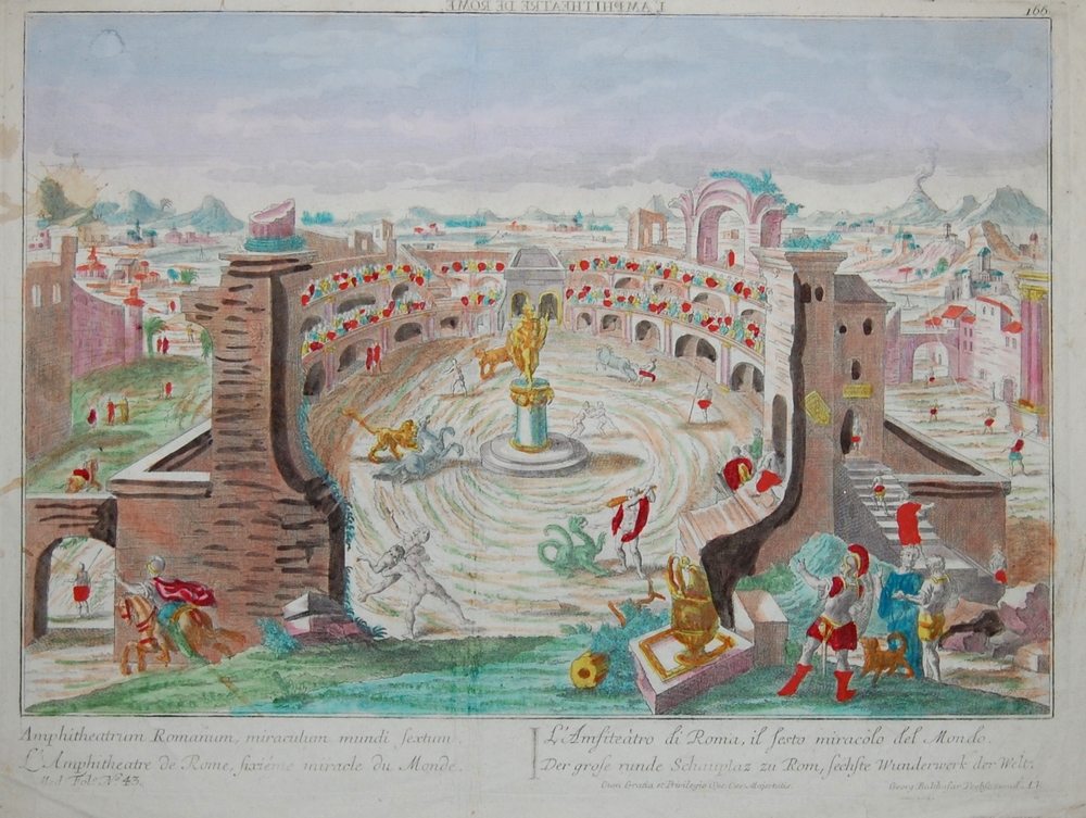 Opticaprent, gezicht op het amphitheater van Rome, h...