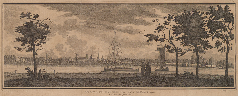gravure, voorstellende een gezicht op Culemborg vana...