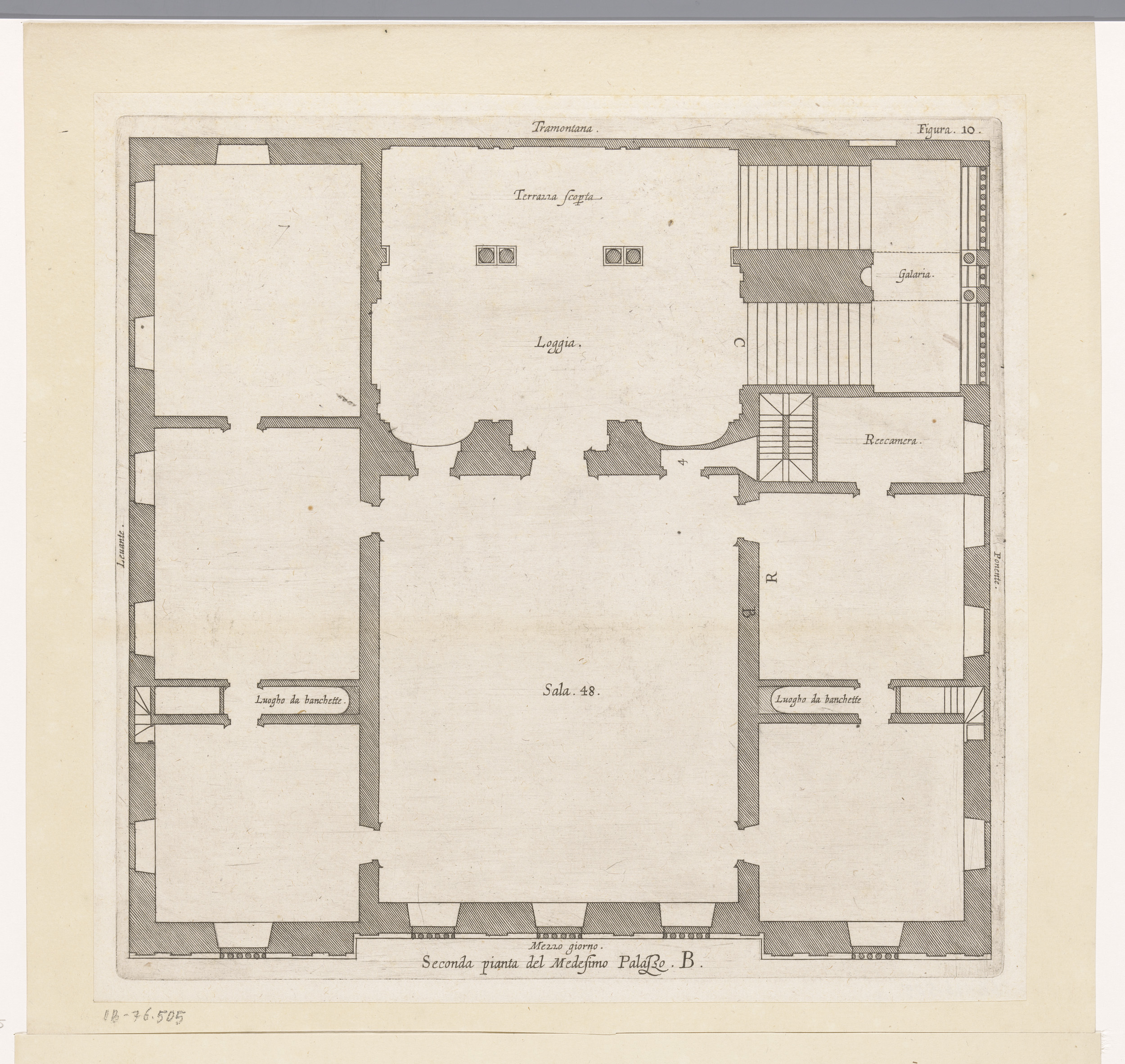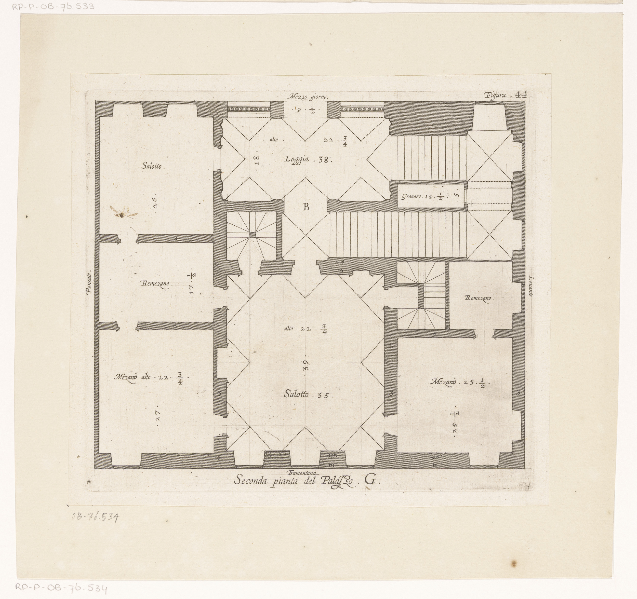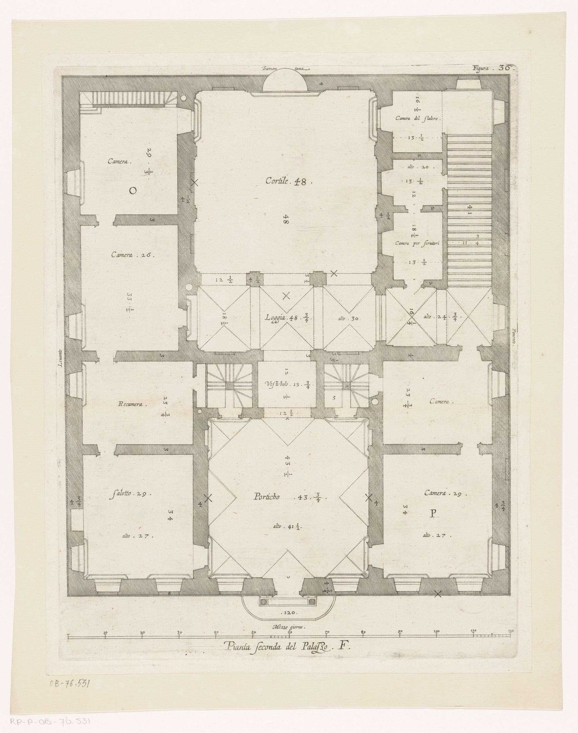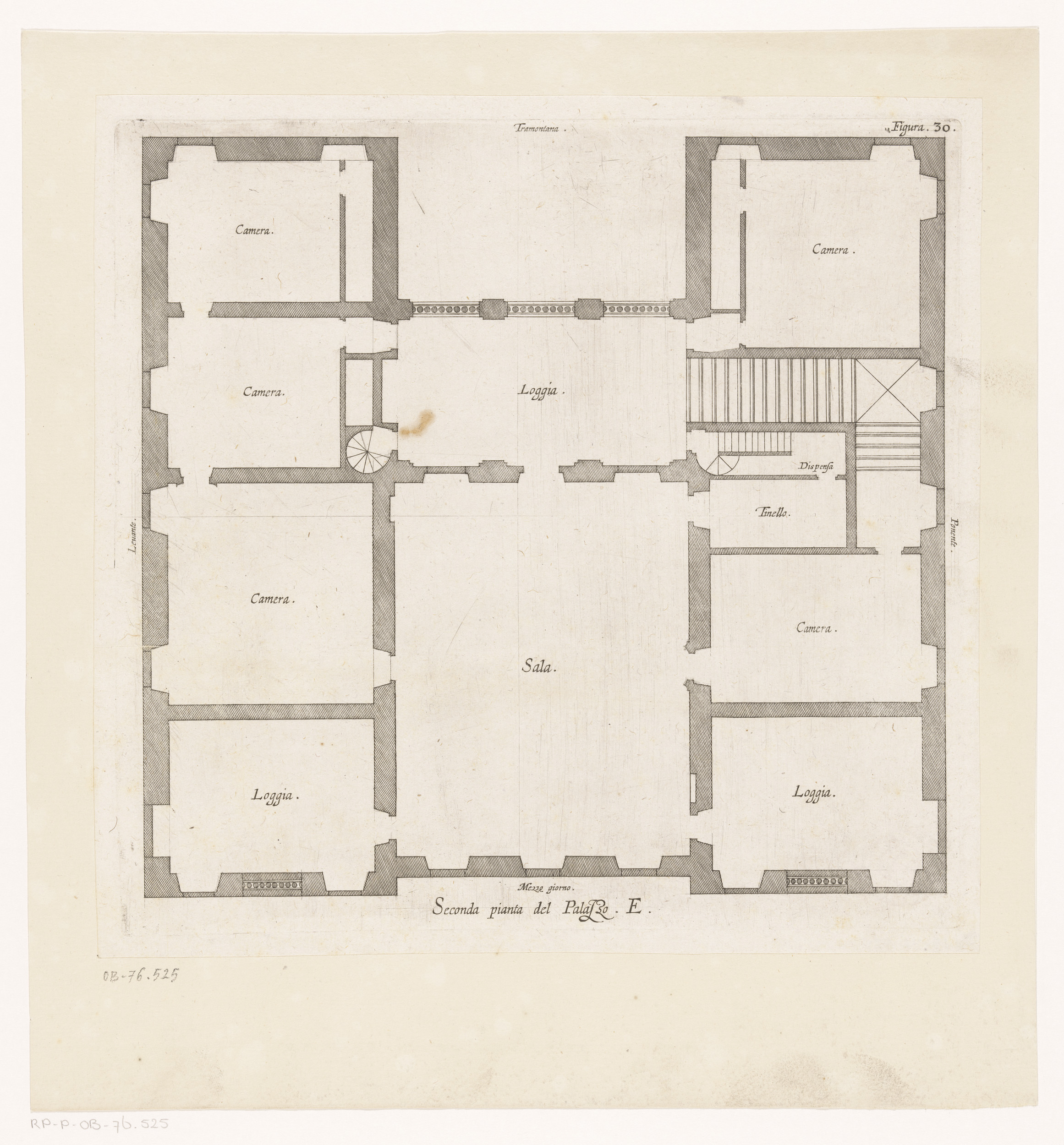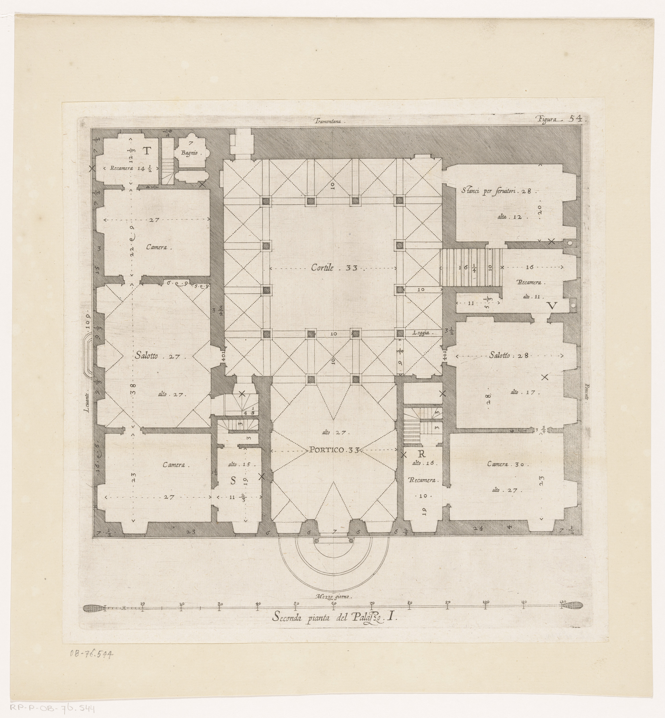 Plattegrond van de tweede verdieping van het Palazzo...