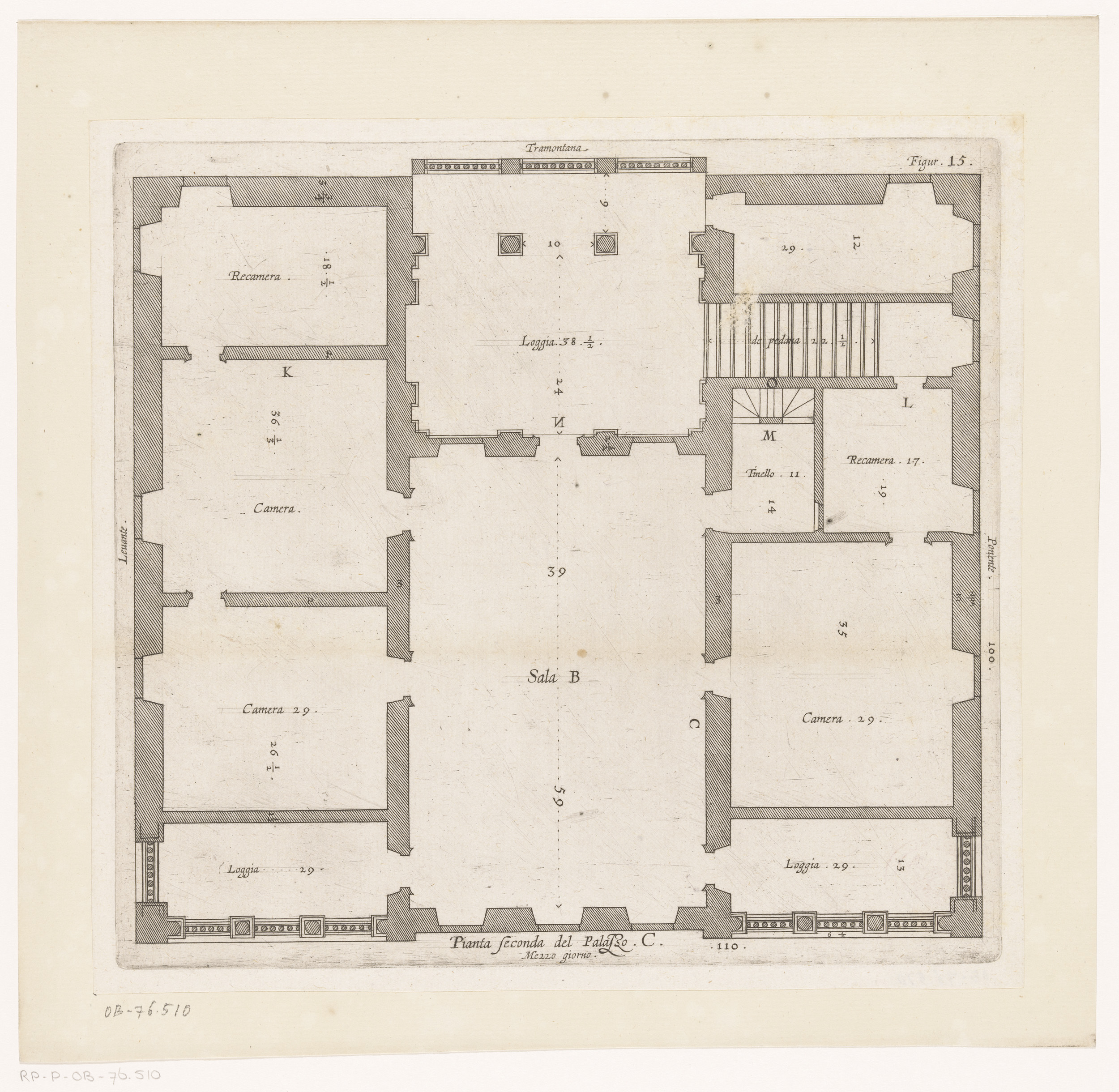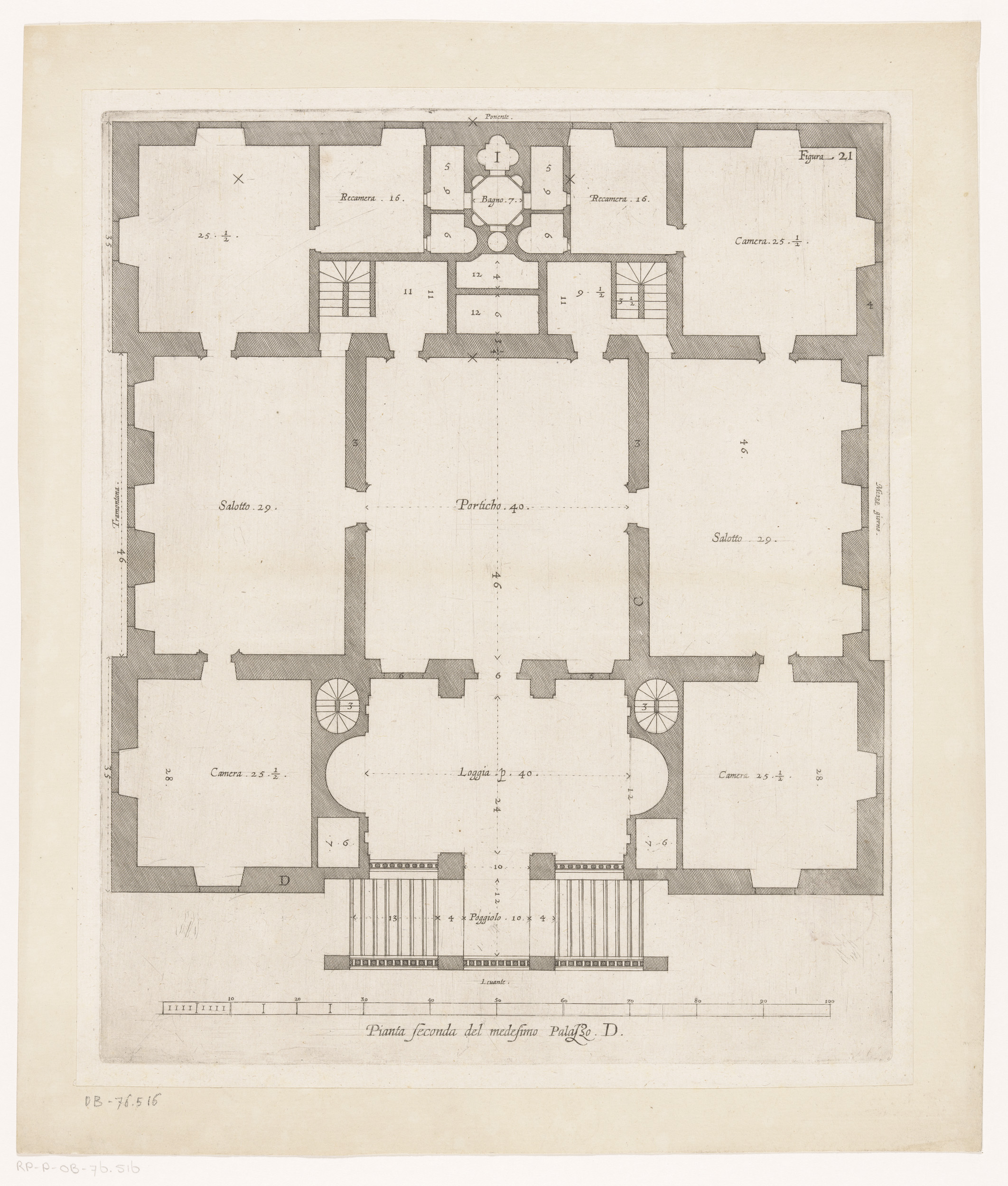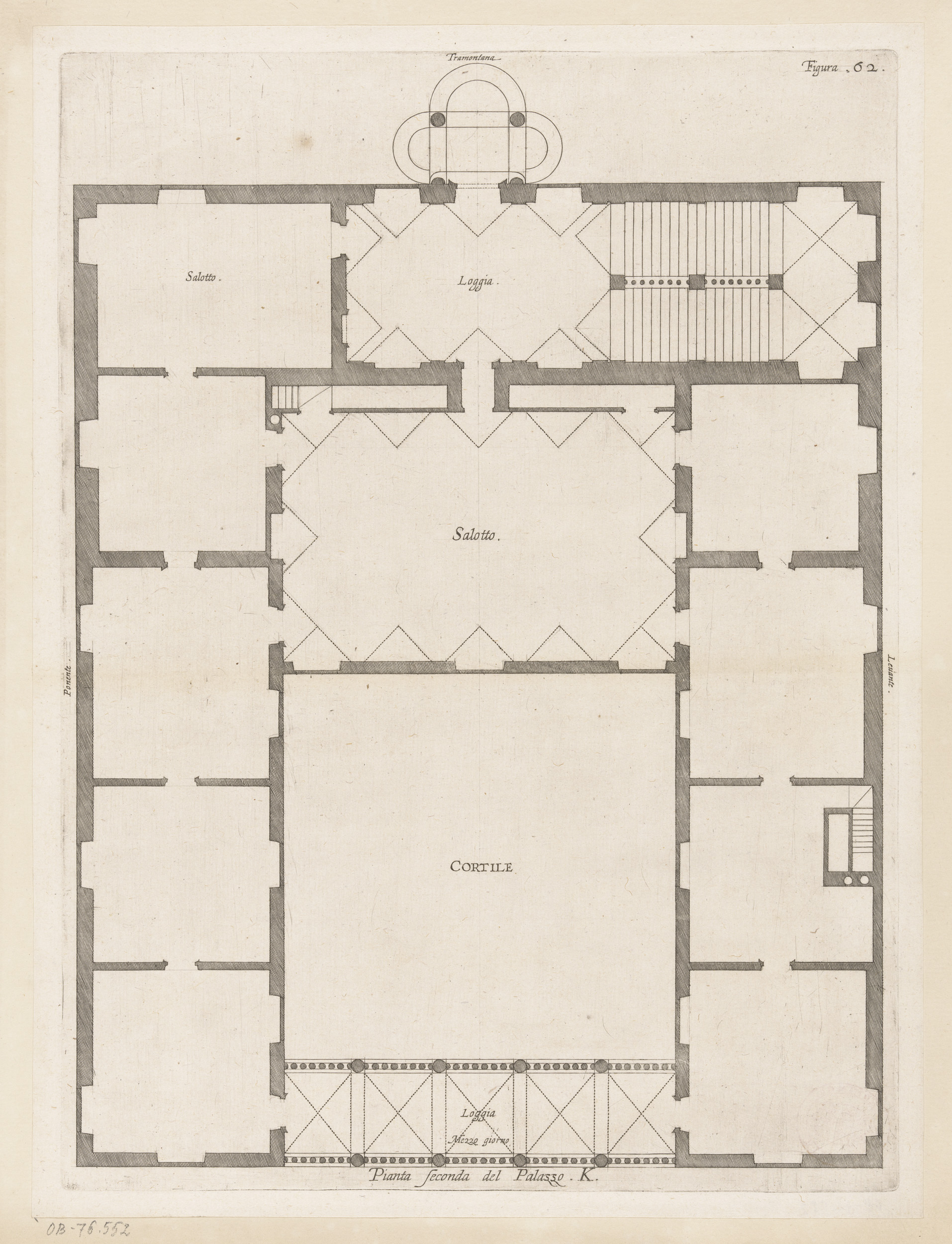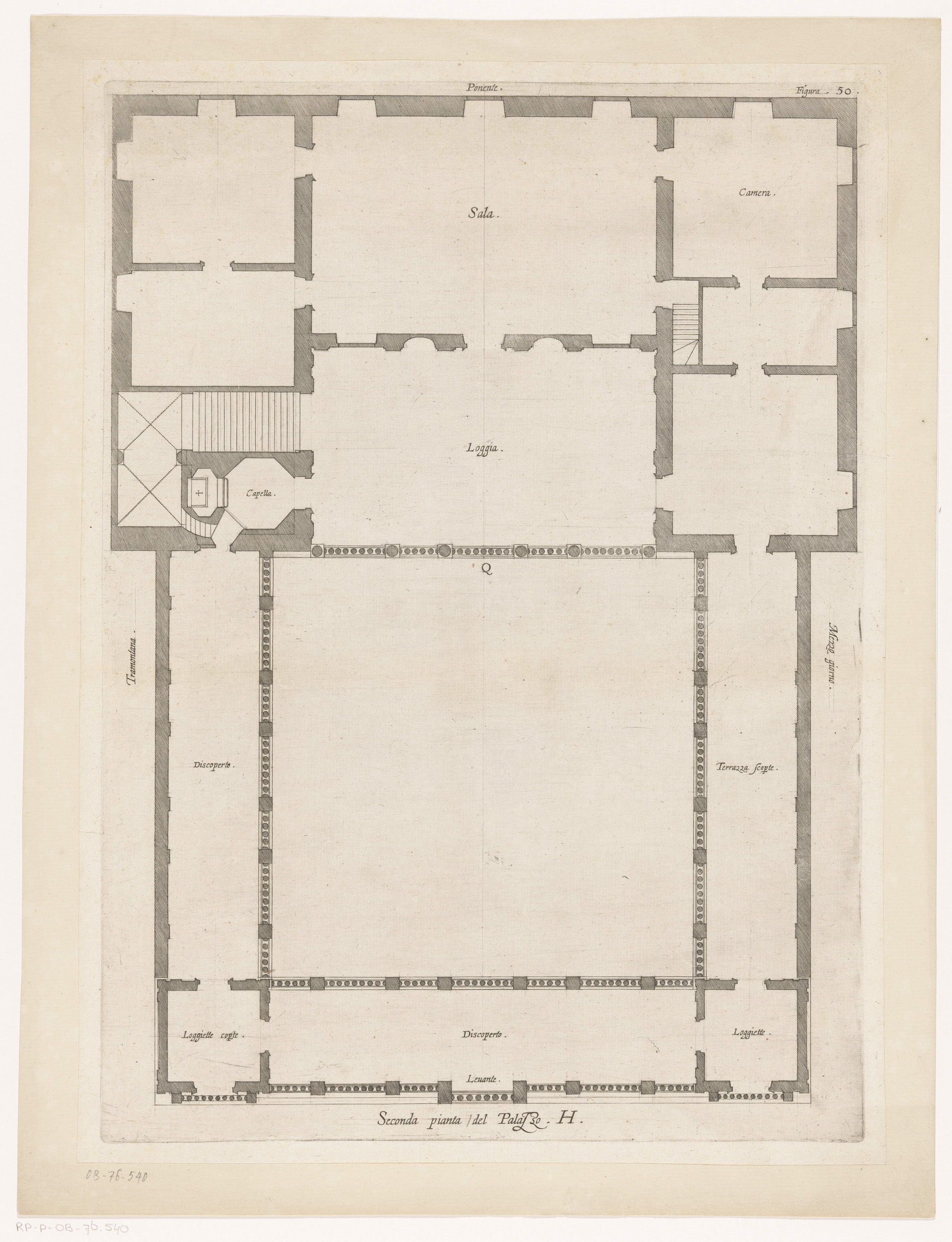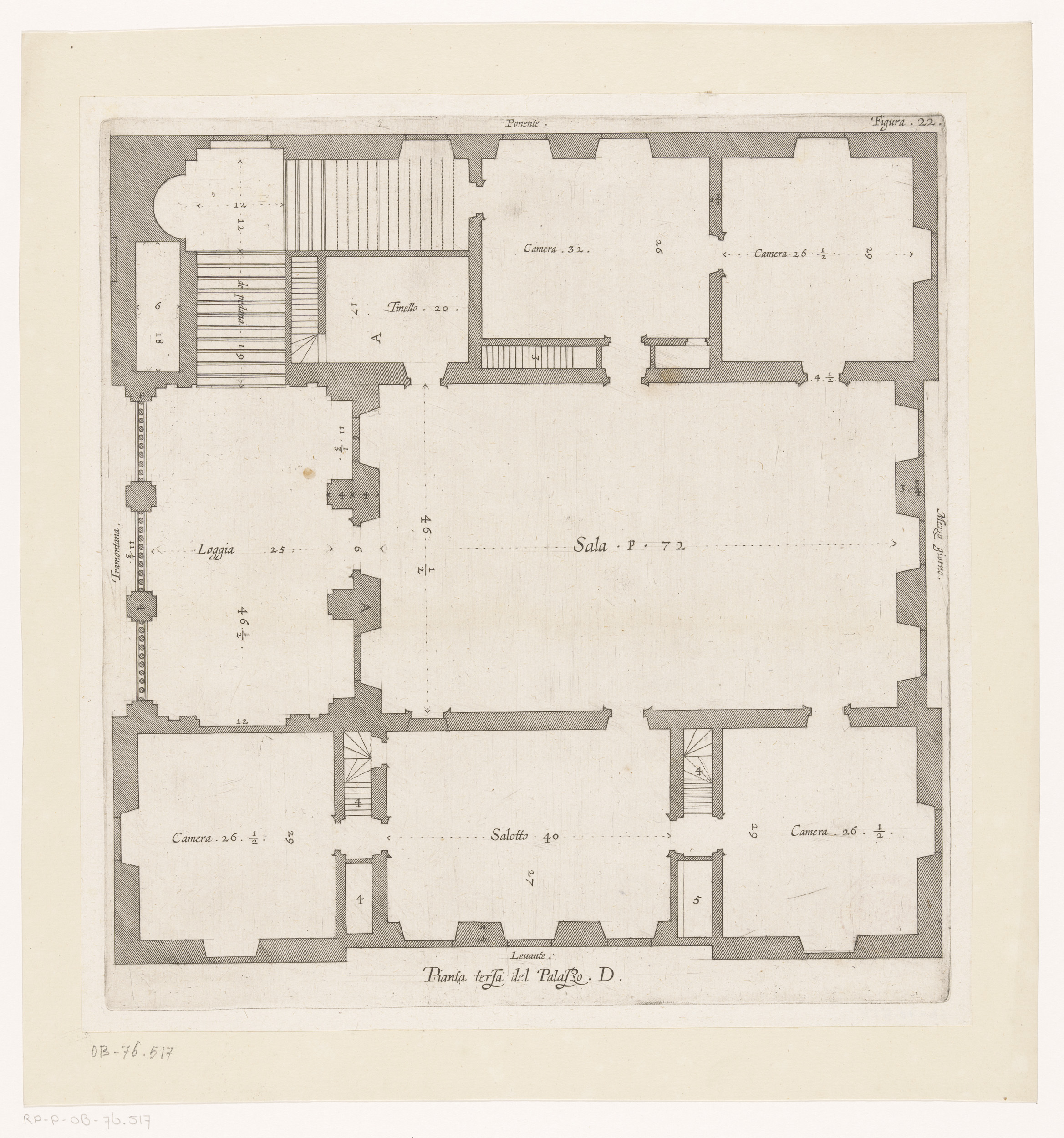 Plattegrond van de tweede verdieping van het Palazzo...