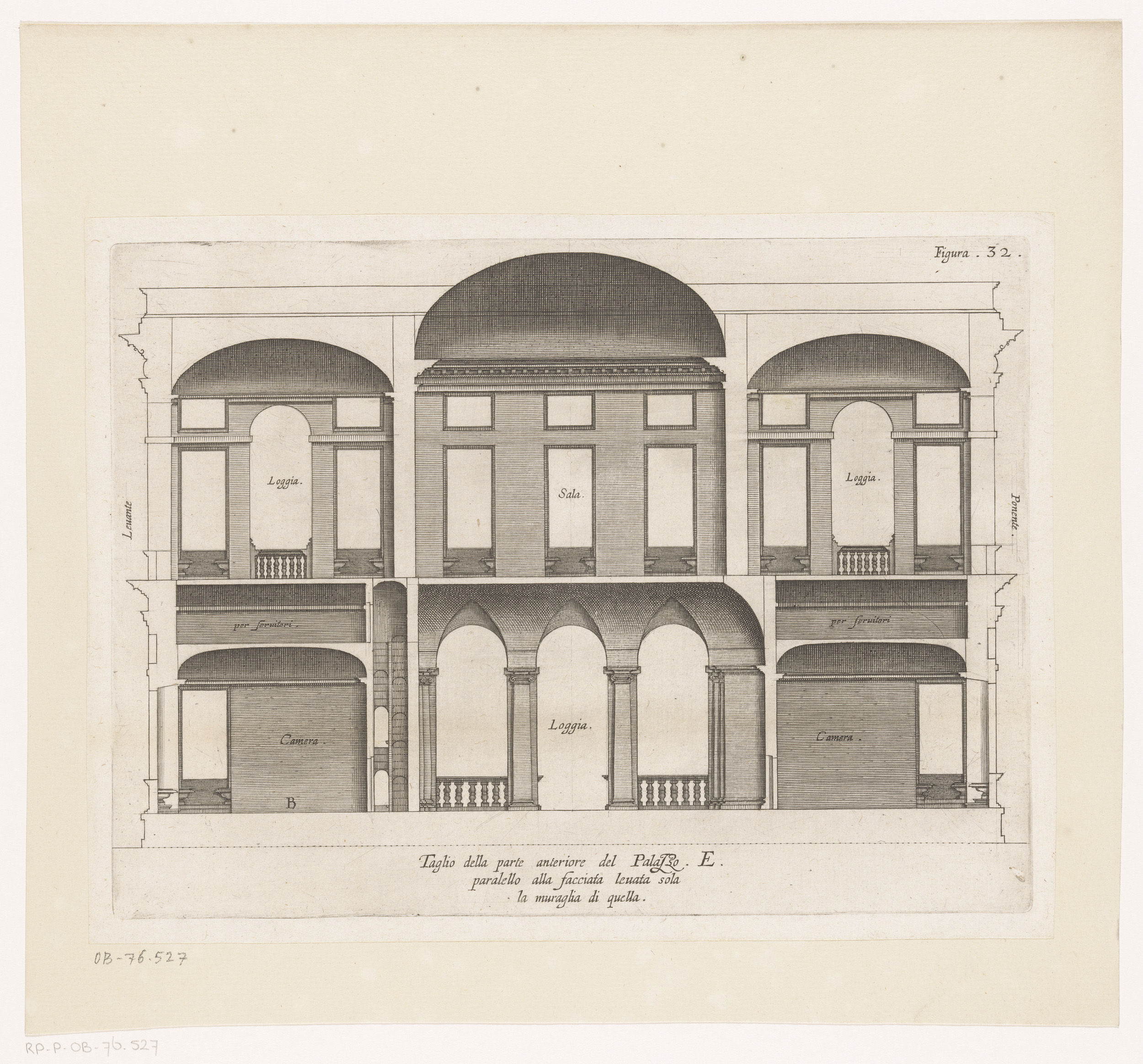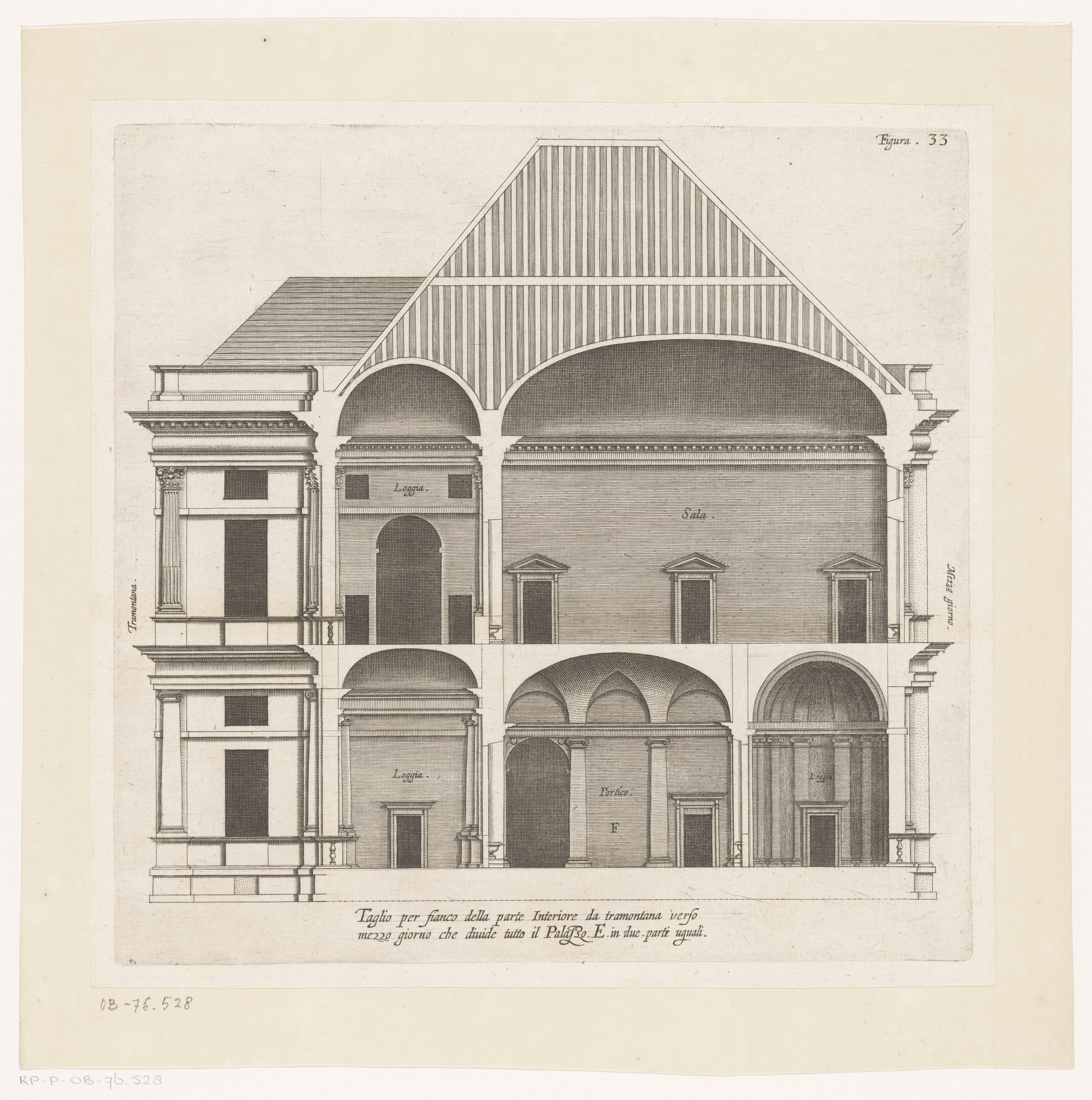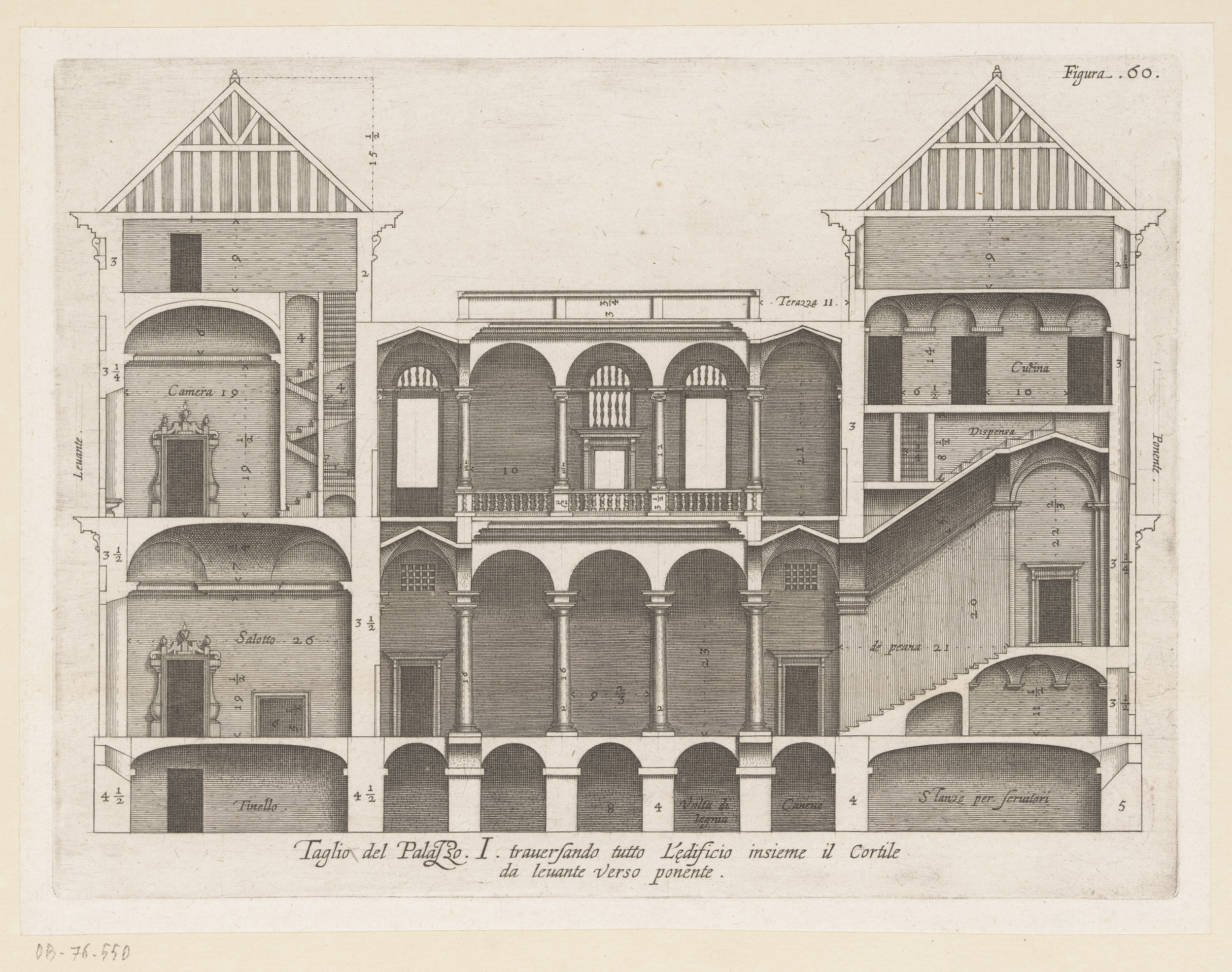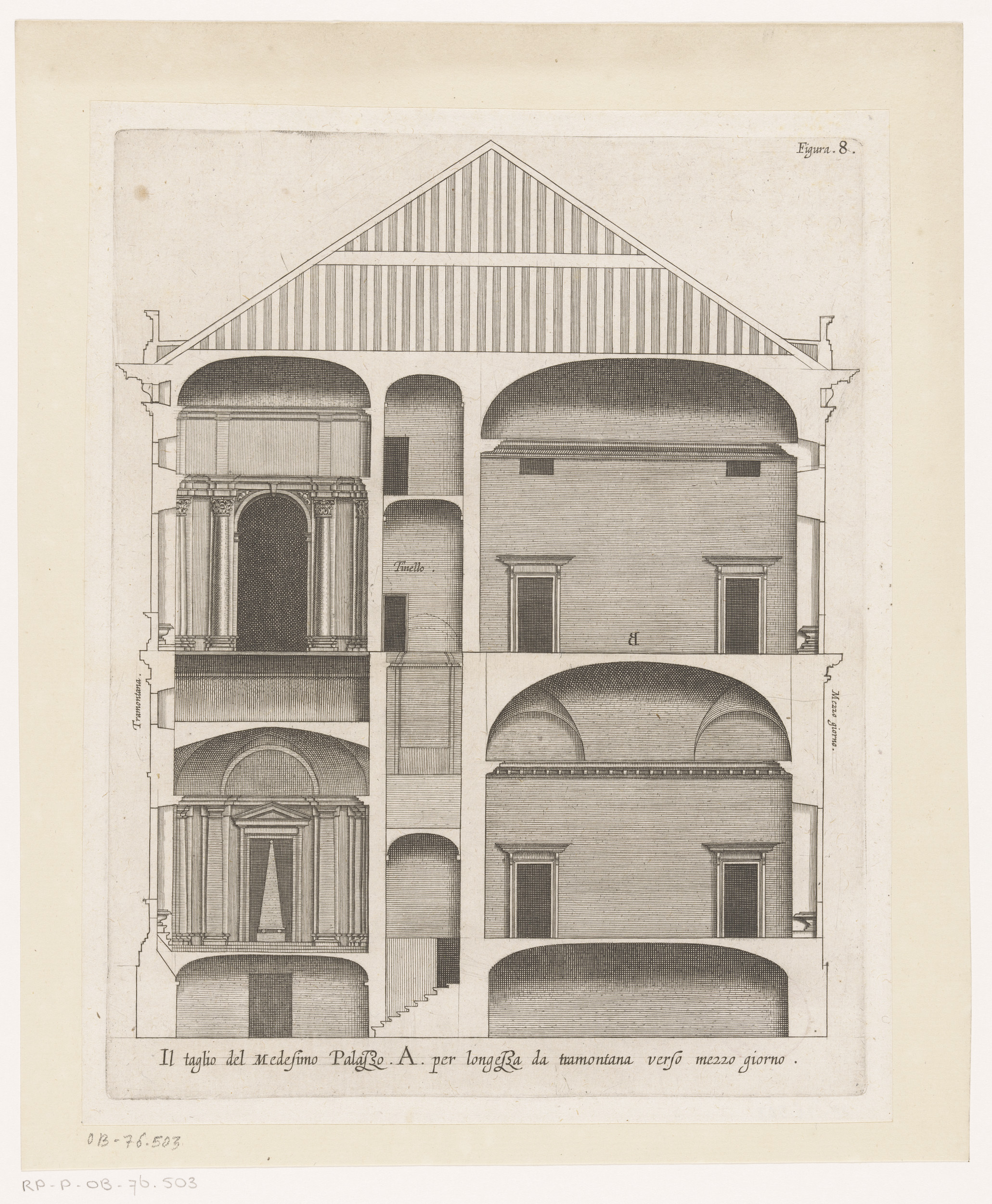Dwarsdoorsnede van de villa Pallavicino delle Peschi...
