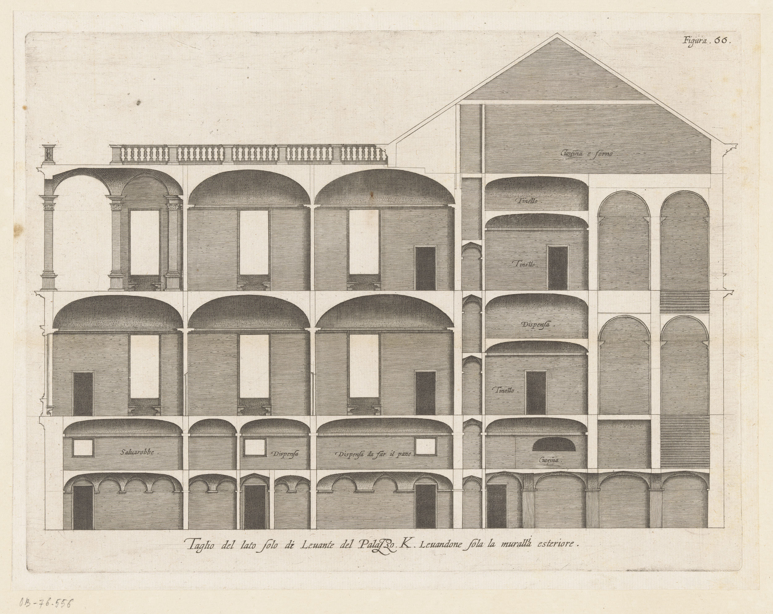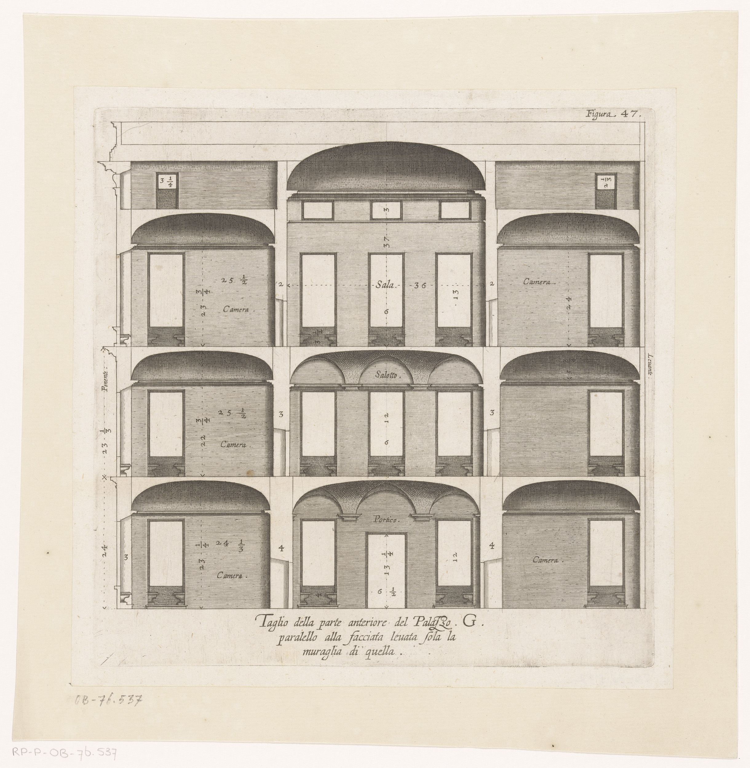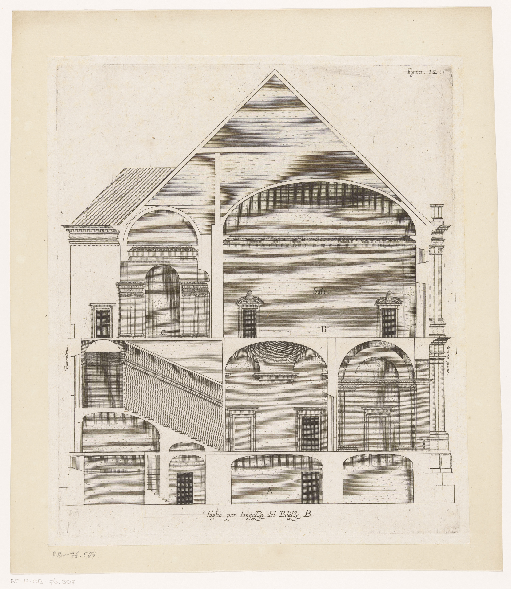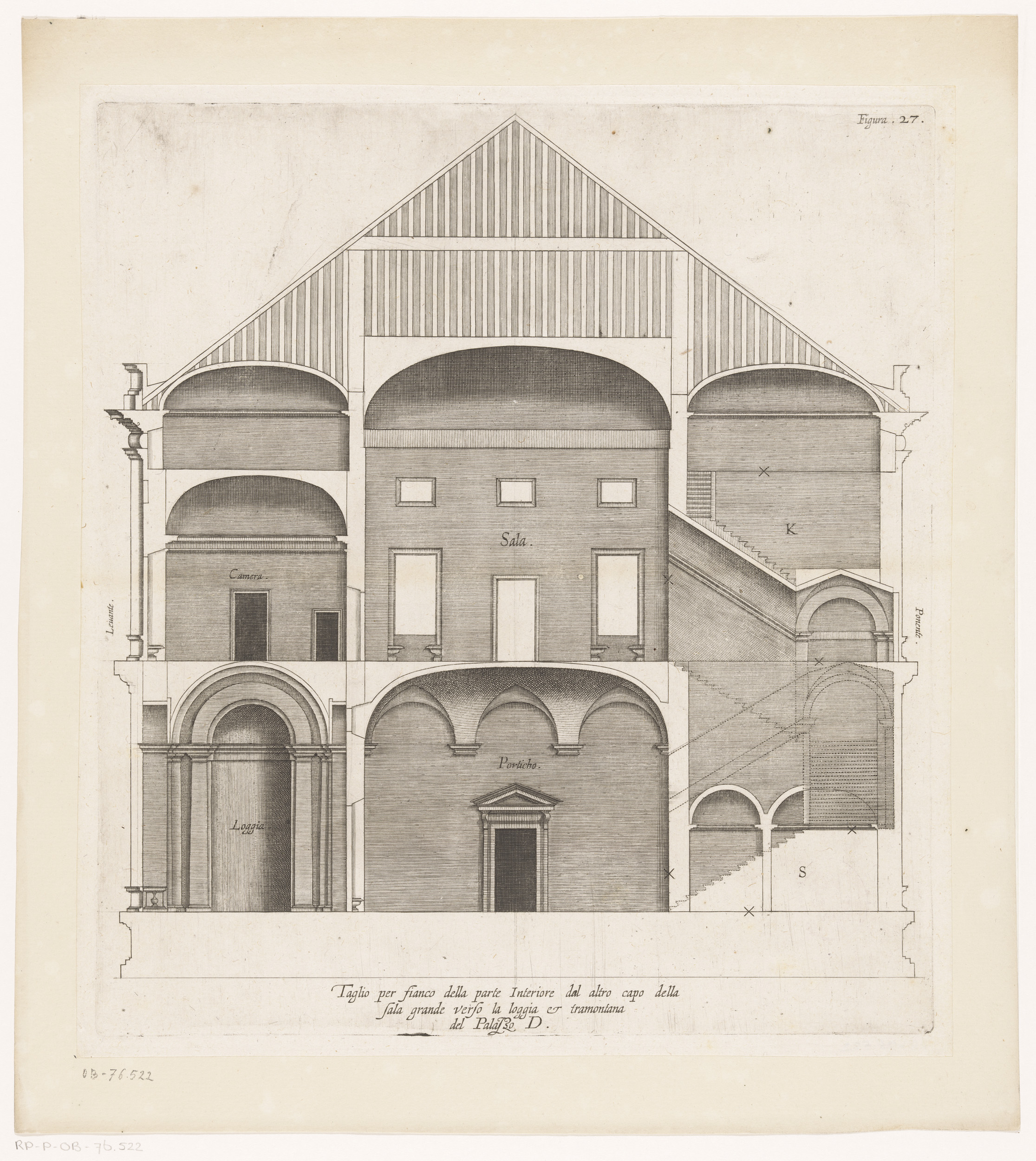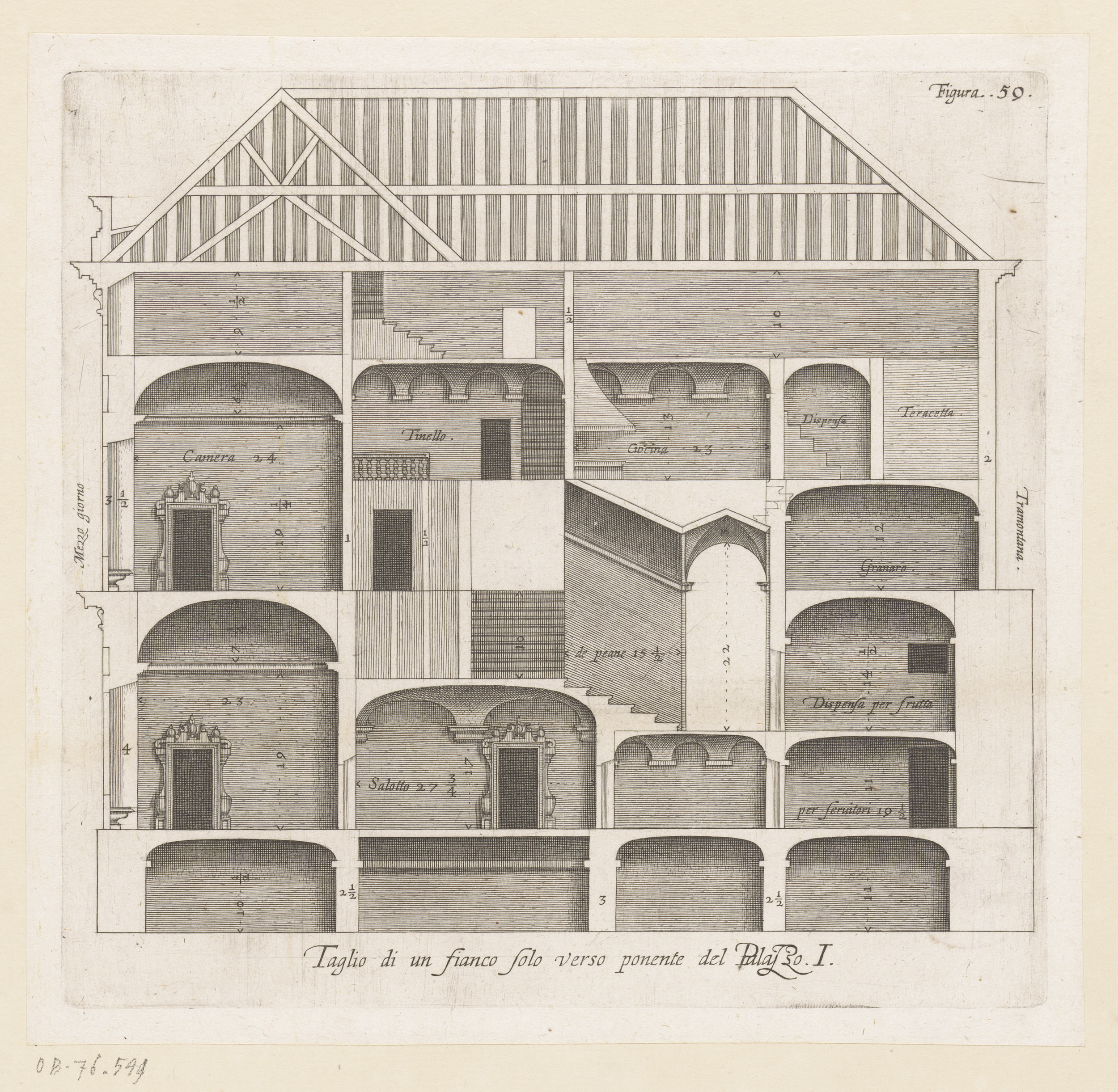 Dwarsdoorsnede van de villa Pallavicino delle Peschi...