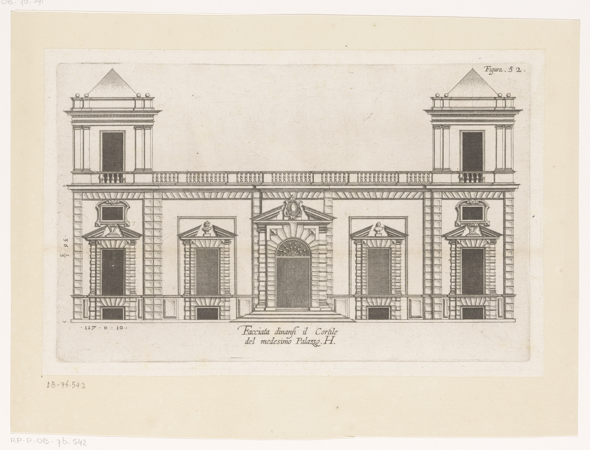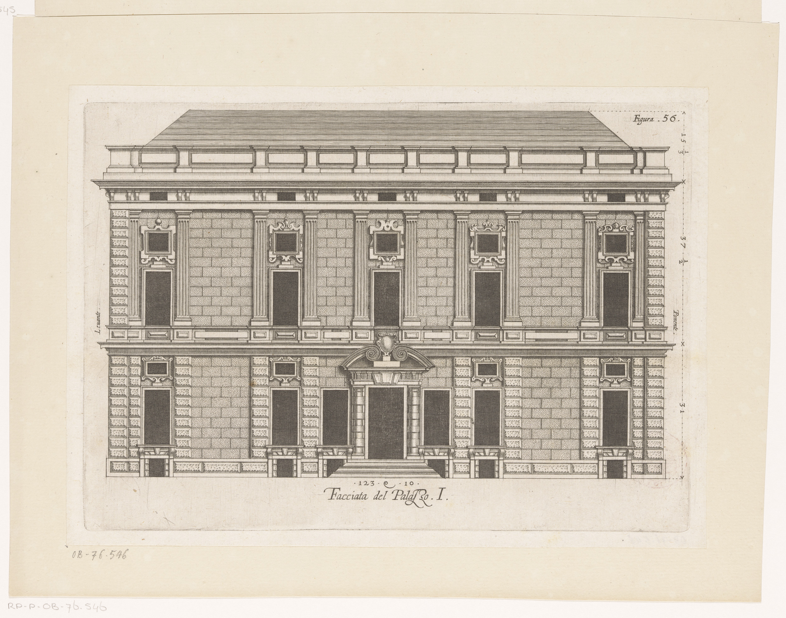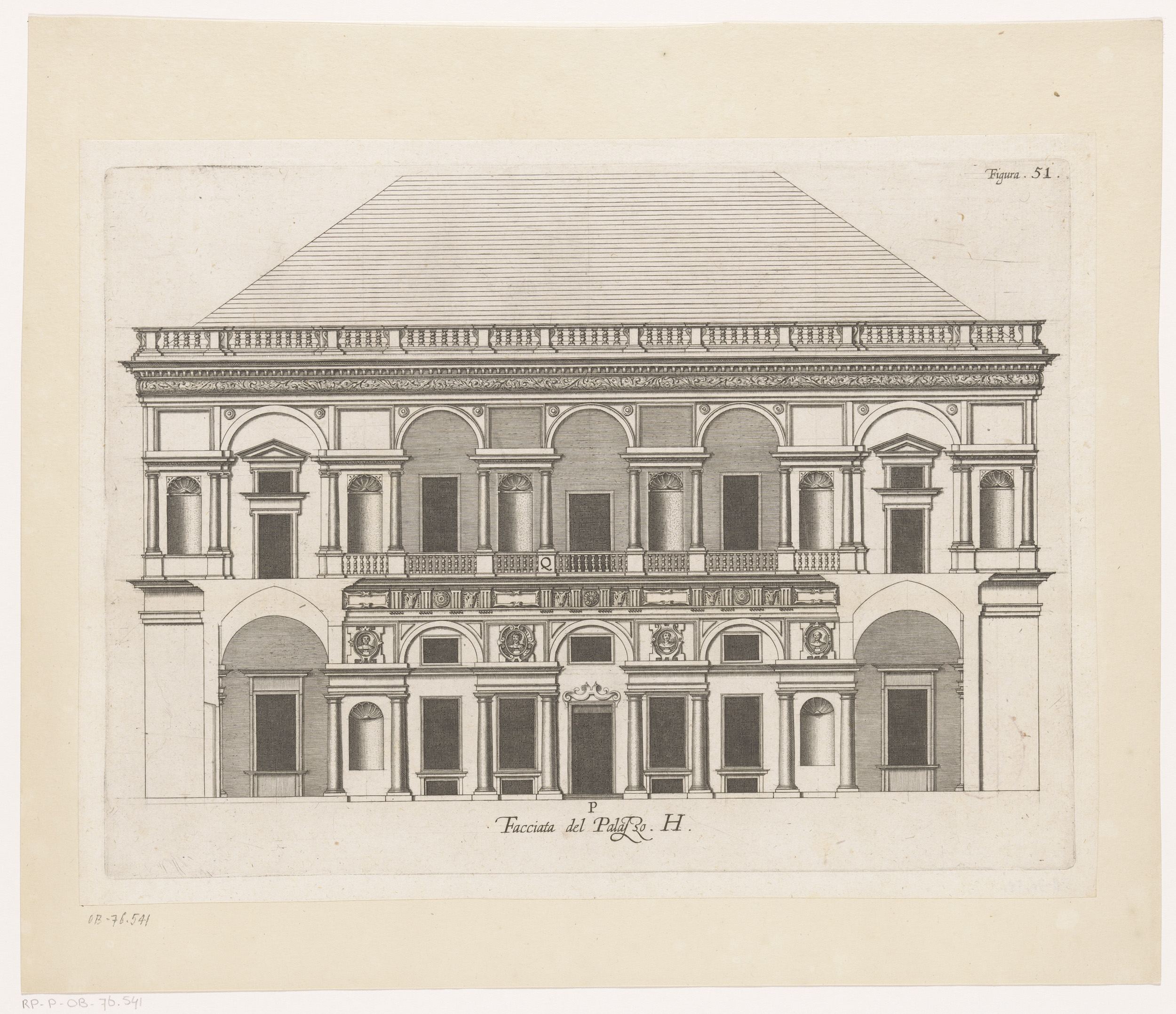 Opstand van de façade aan de straatzijde van het Pal...