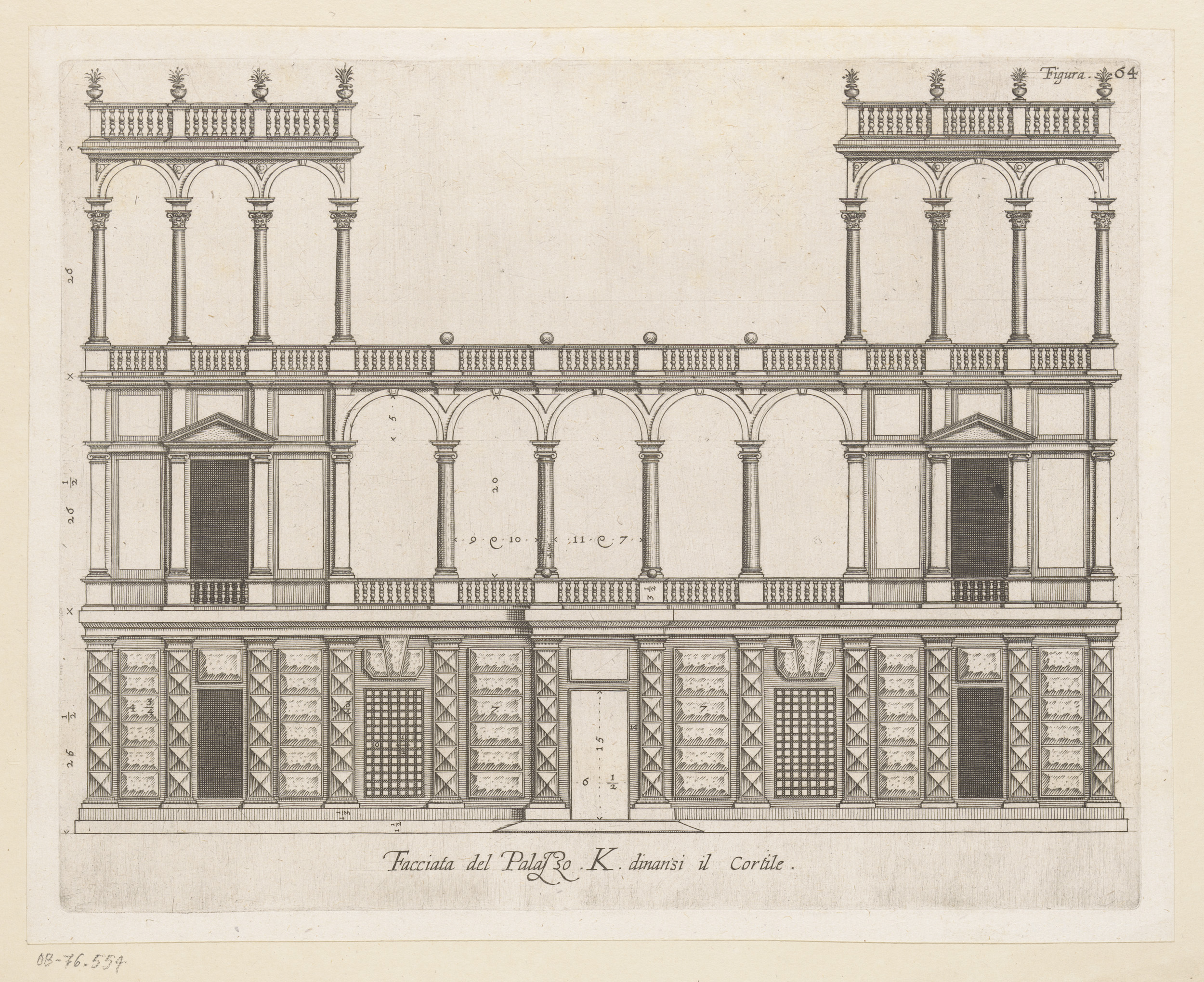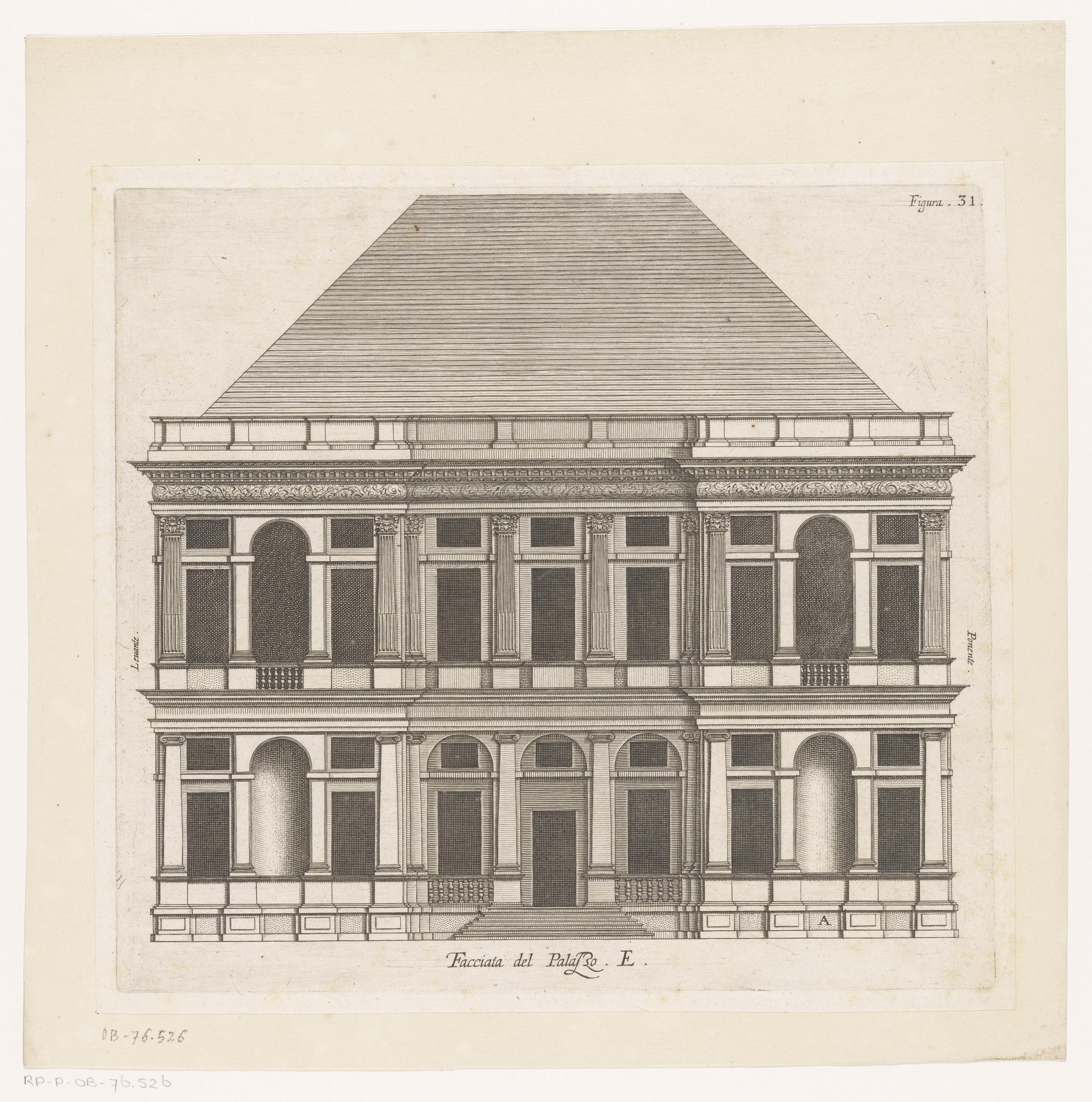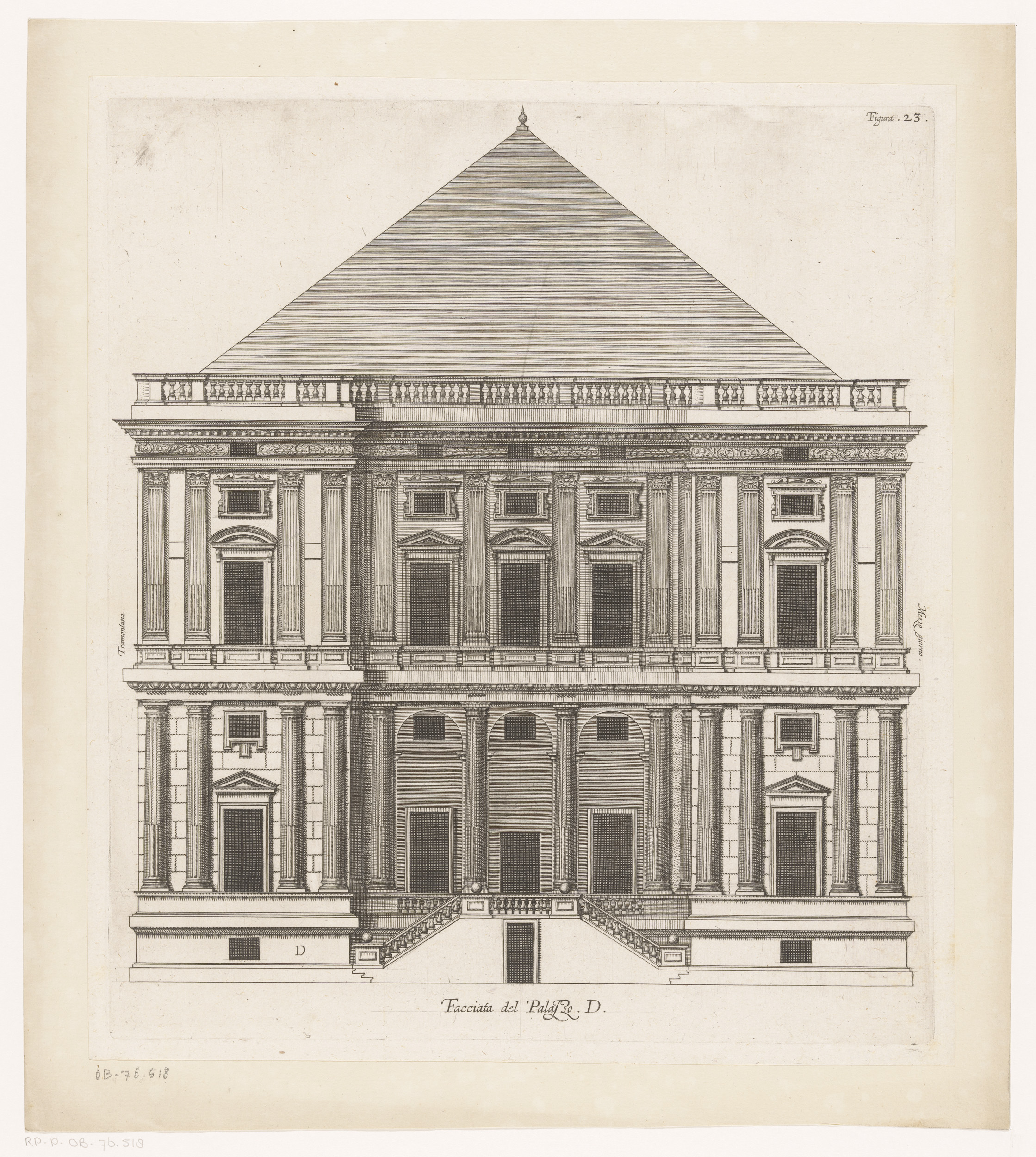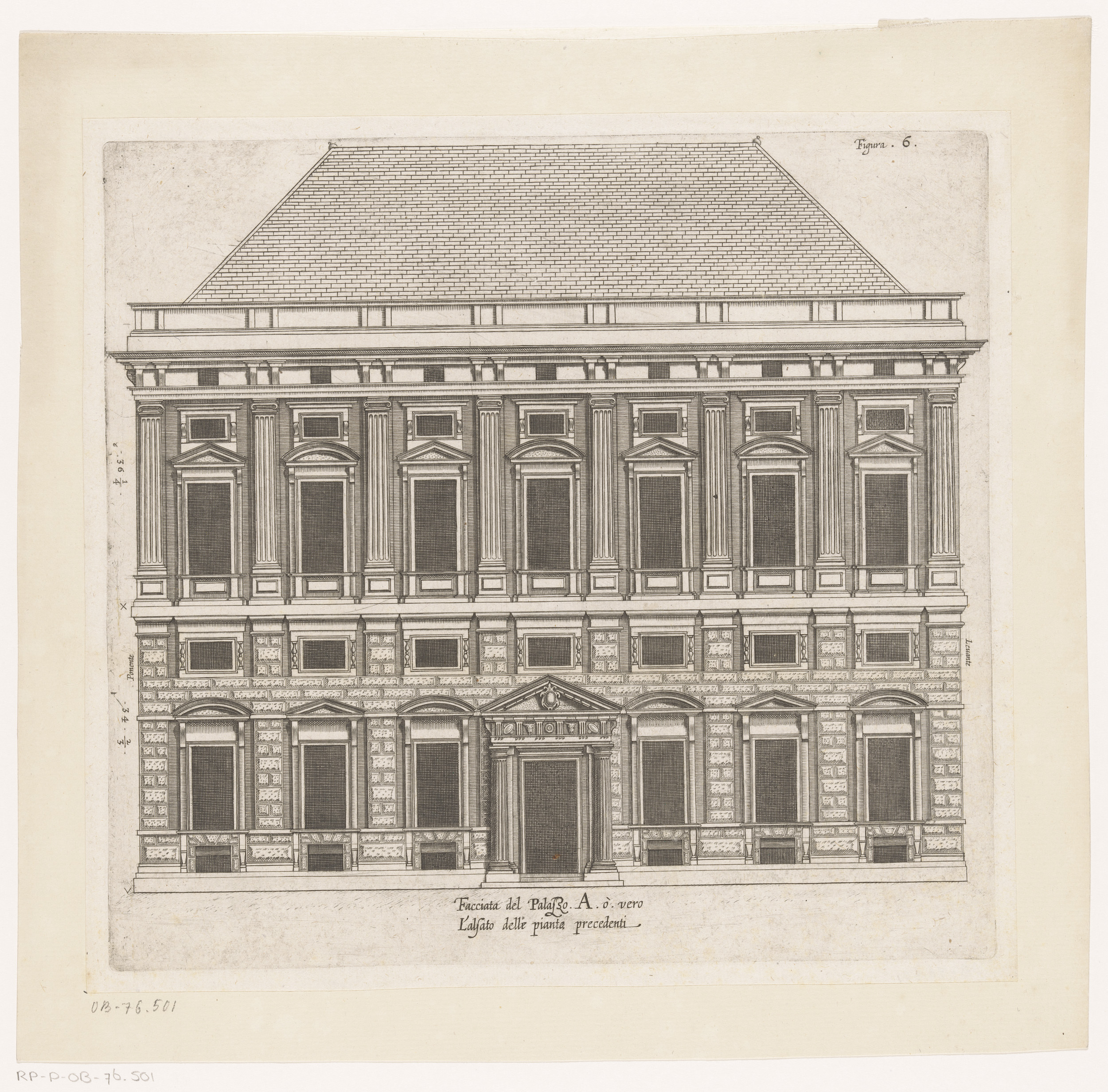 Opstand van de façade aan de straatzijde van het Pal...