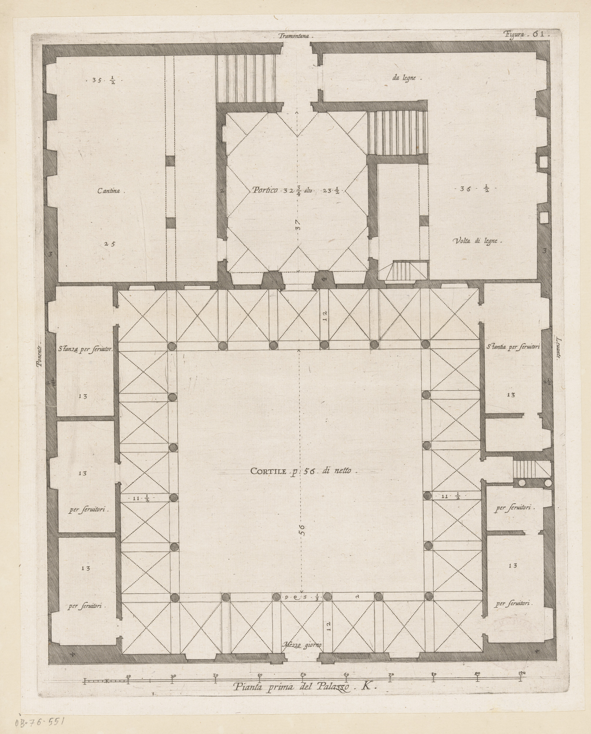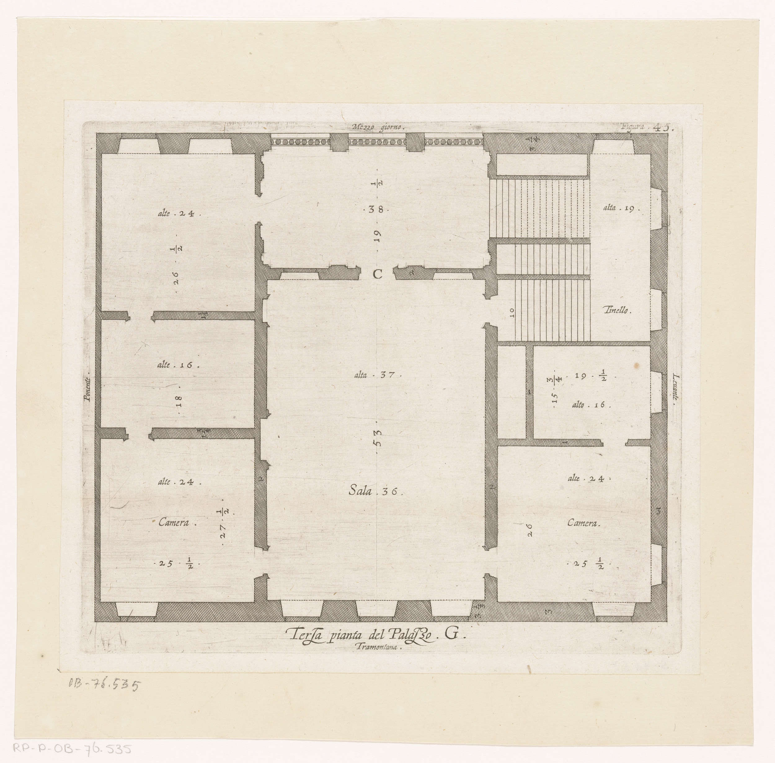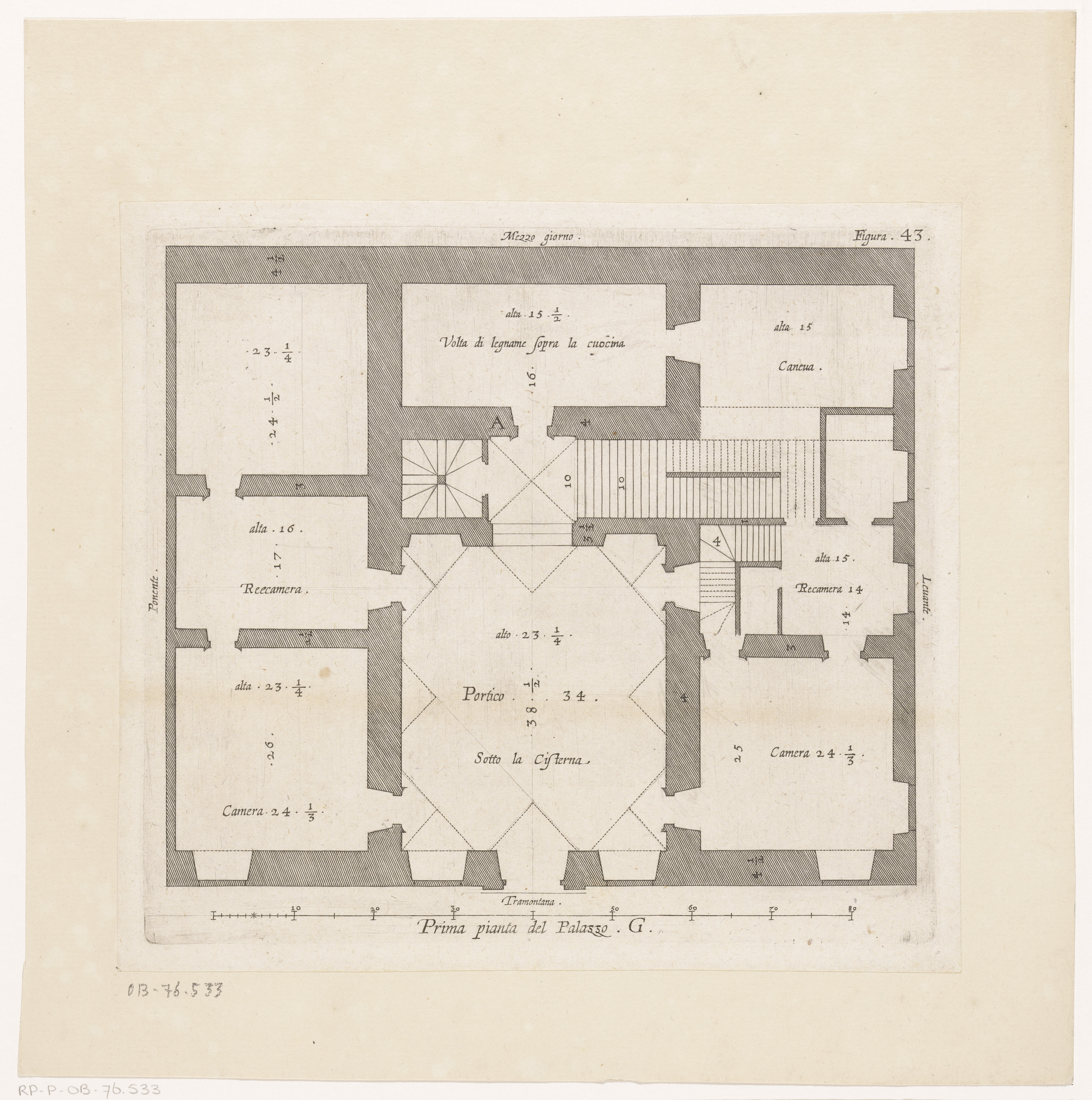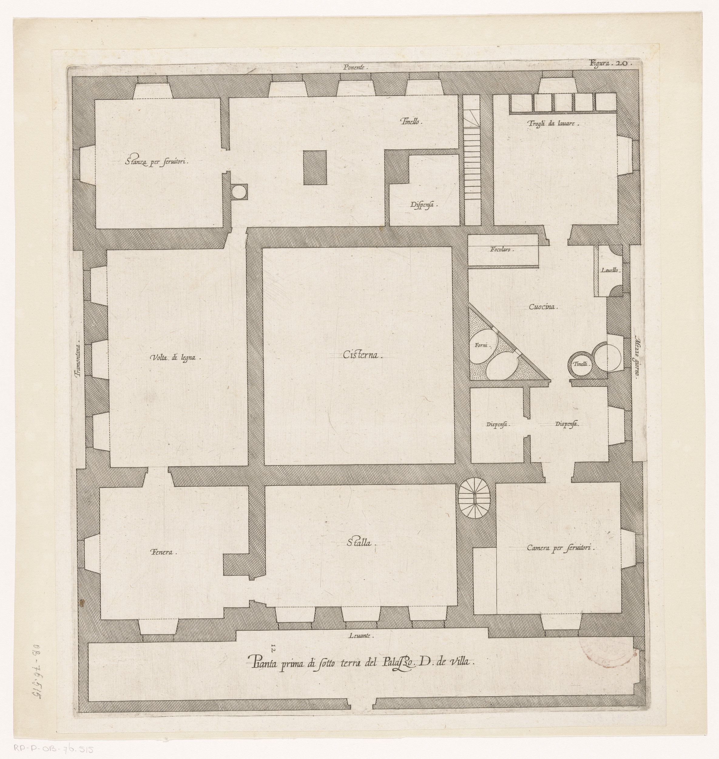 Plattegrond van het souterrain van het Palazzo Rosta...