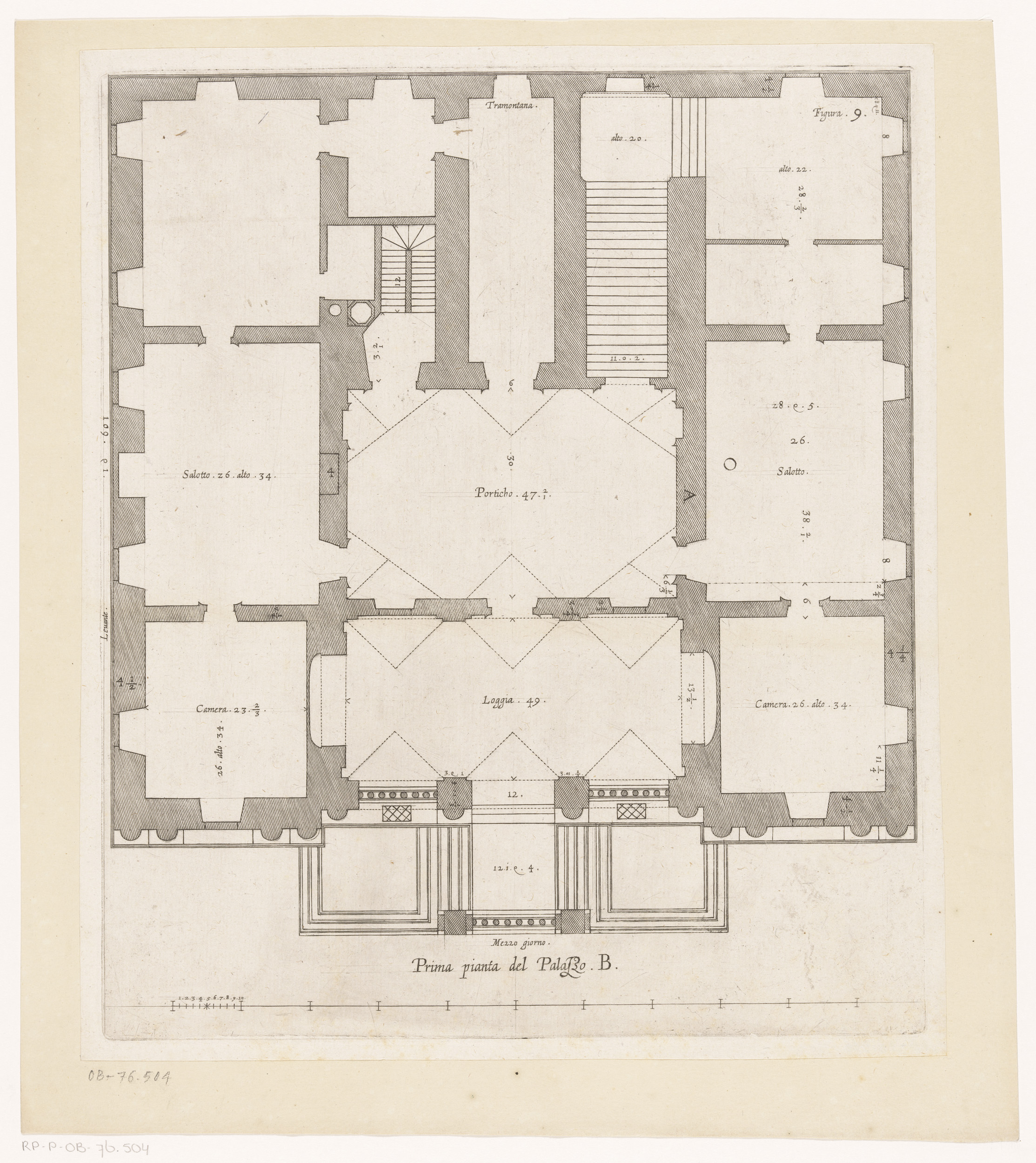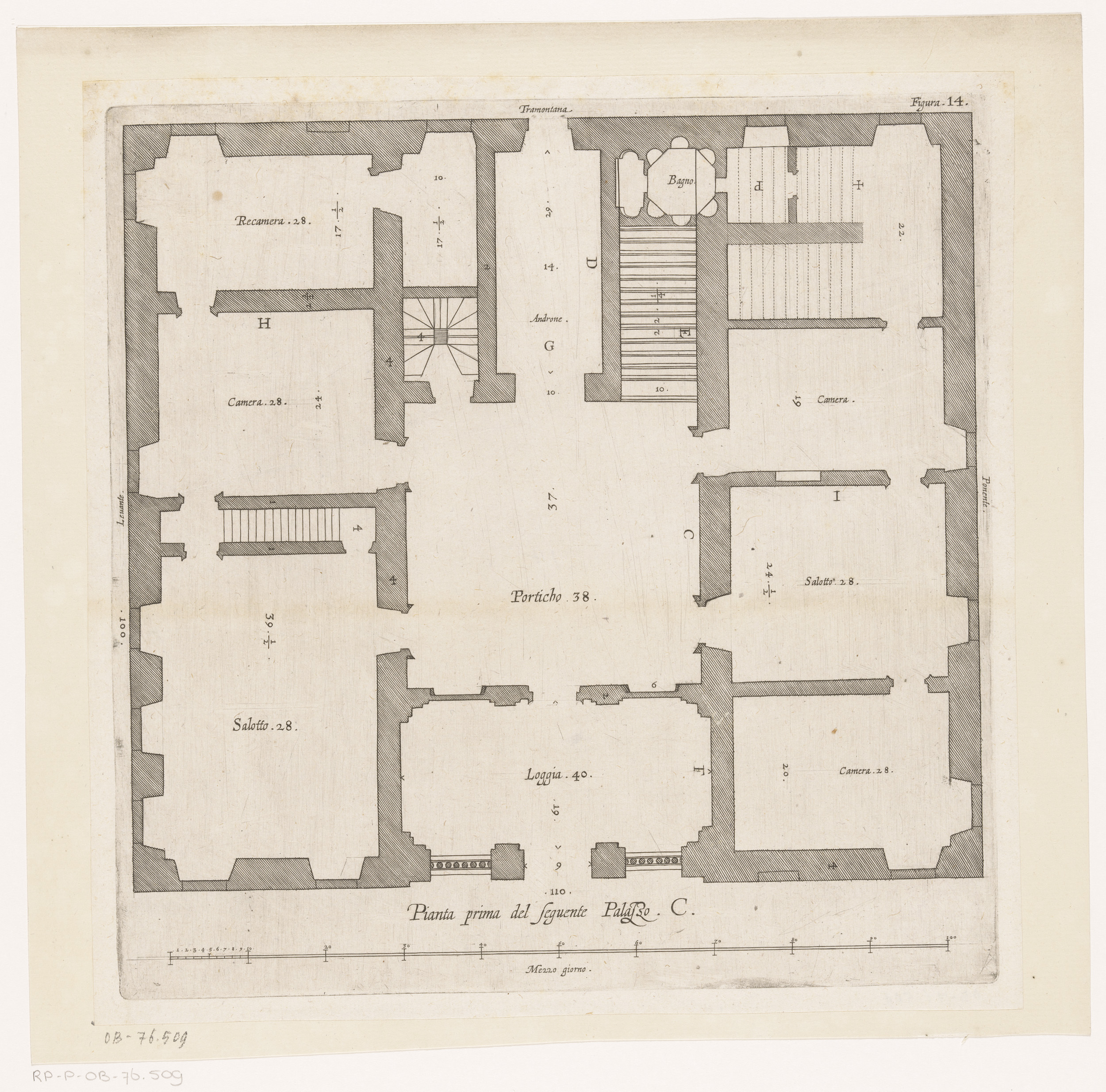 Plattegrond van de begane grond van het Palazzo Rost...