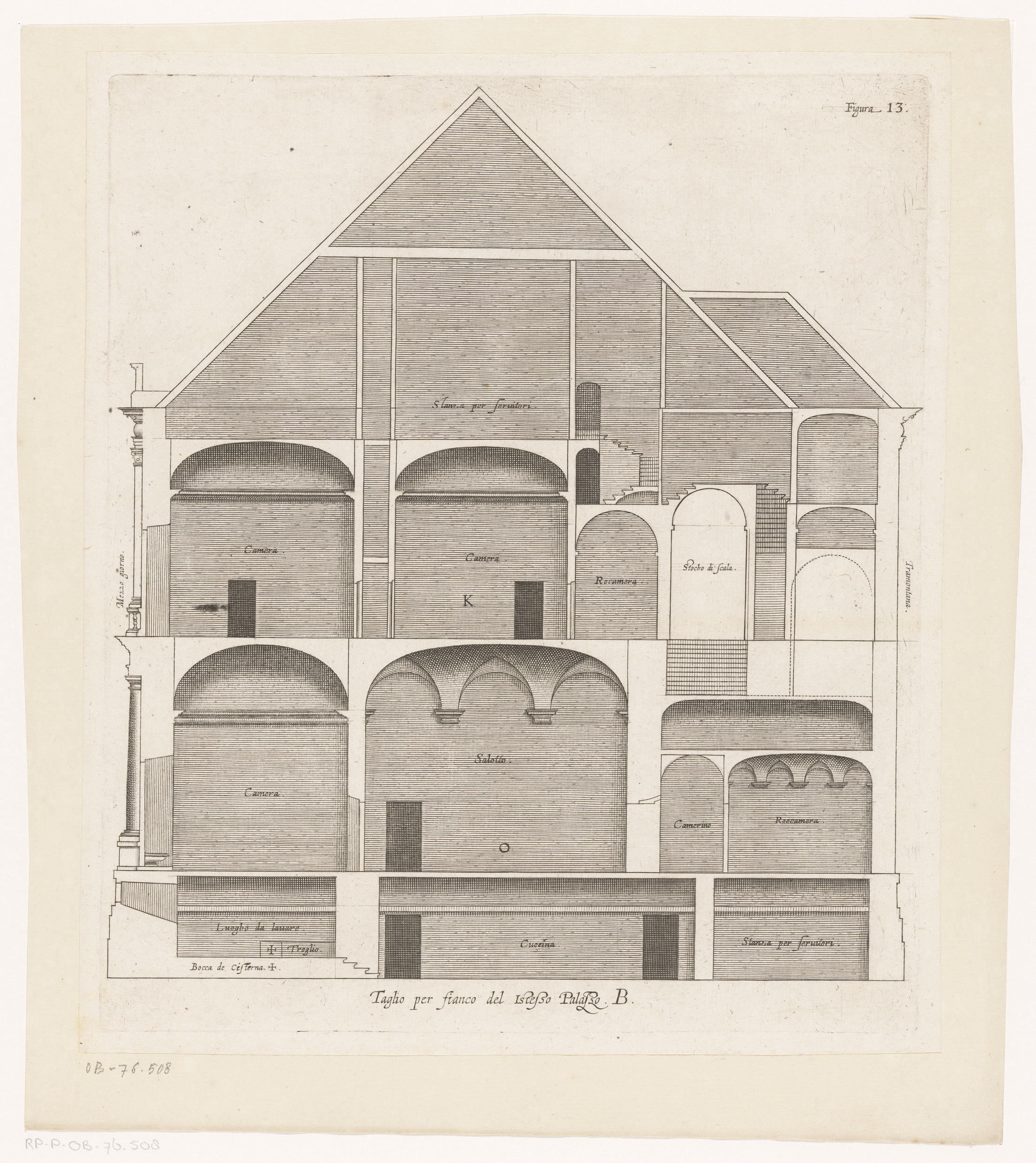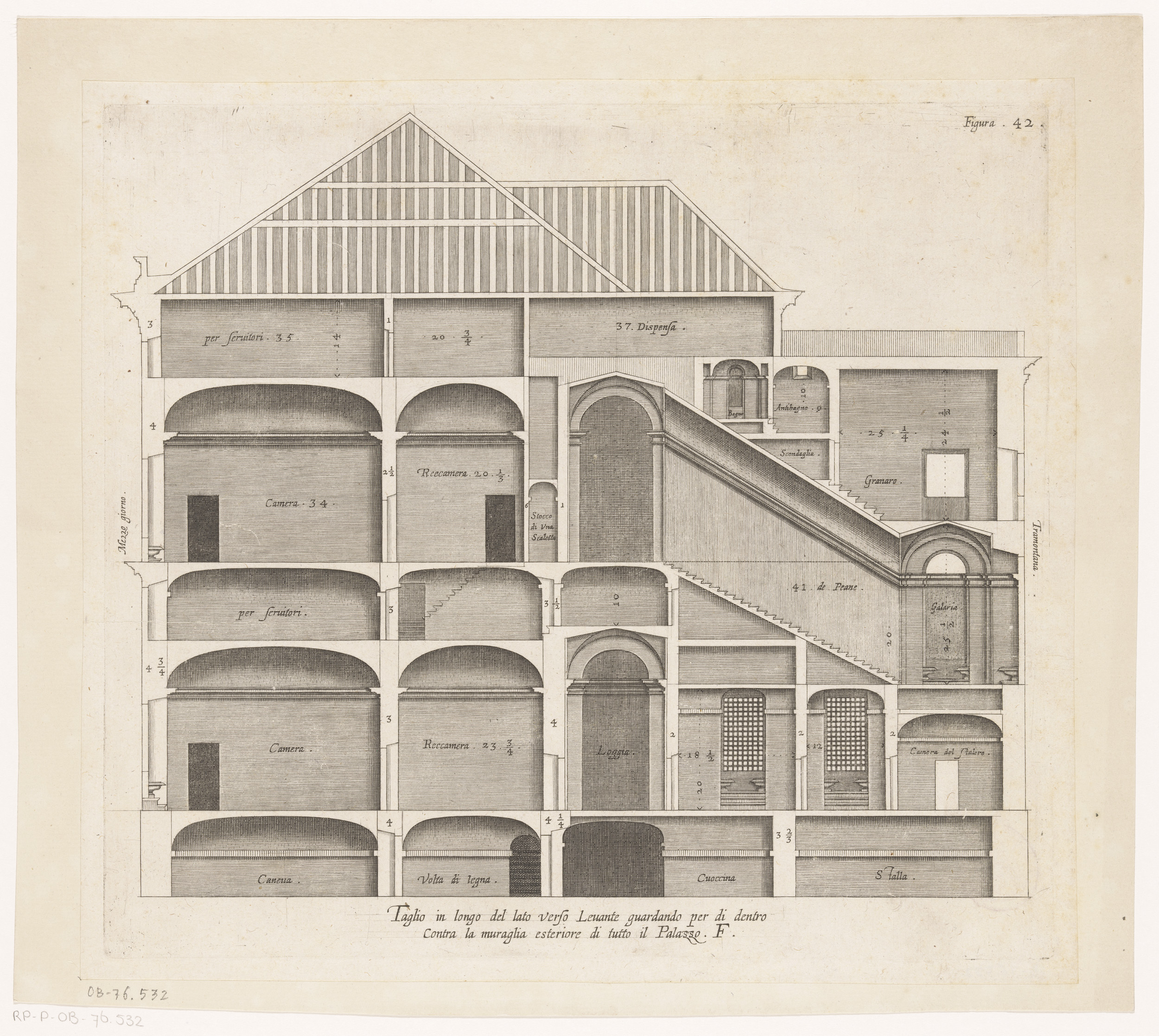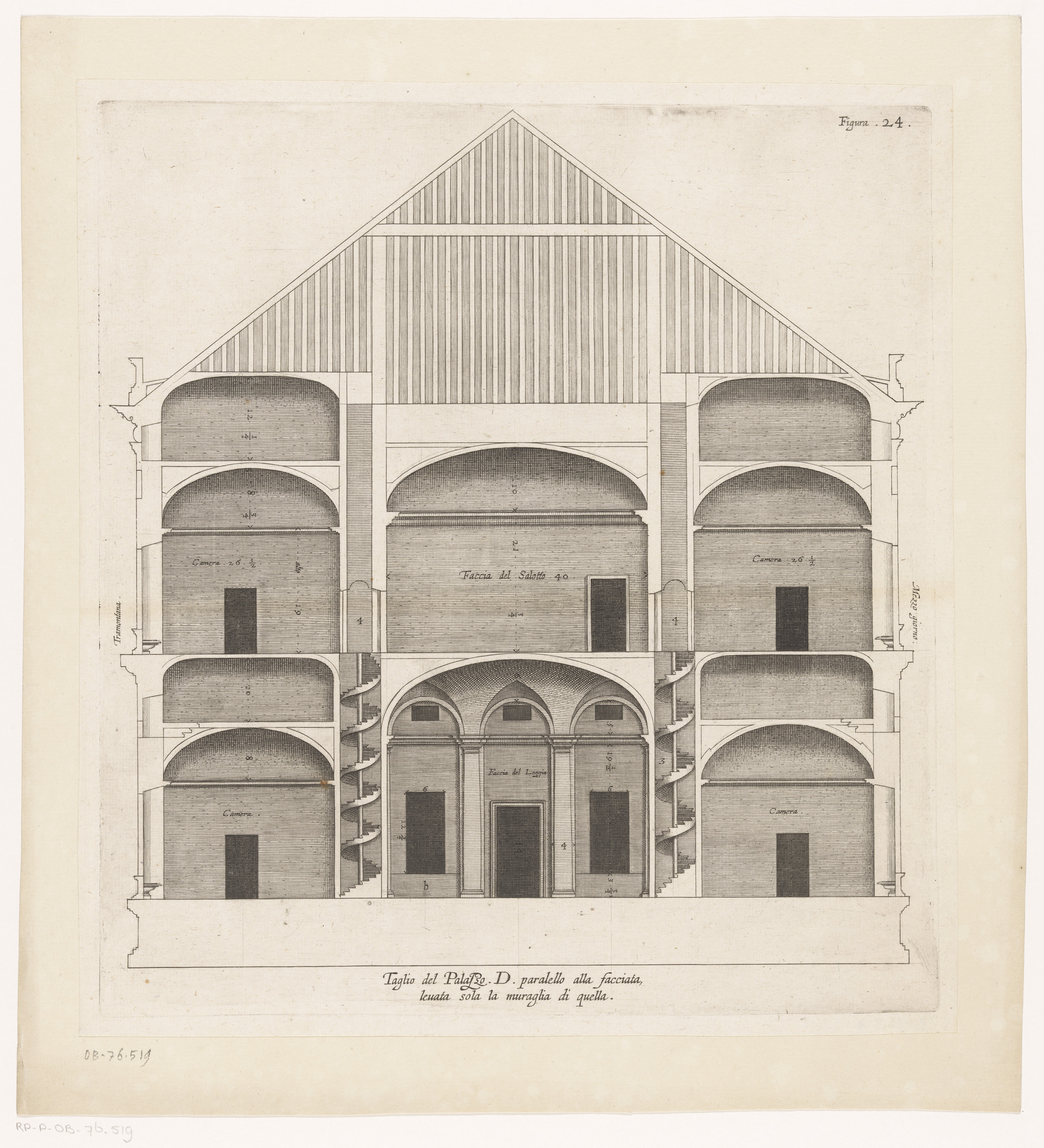 Dwarsdoorsnede van het Palazzo Rostan Raggio te Genua