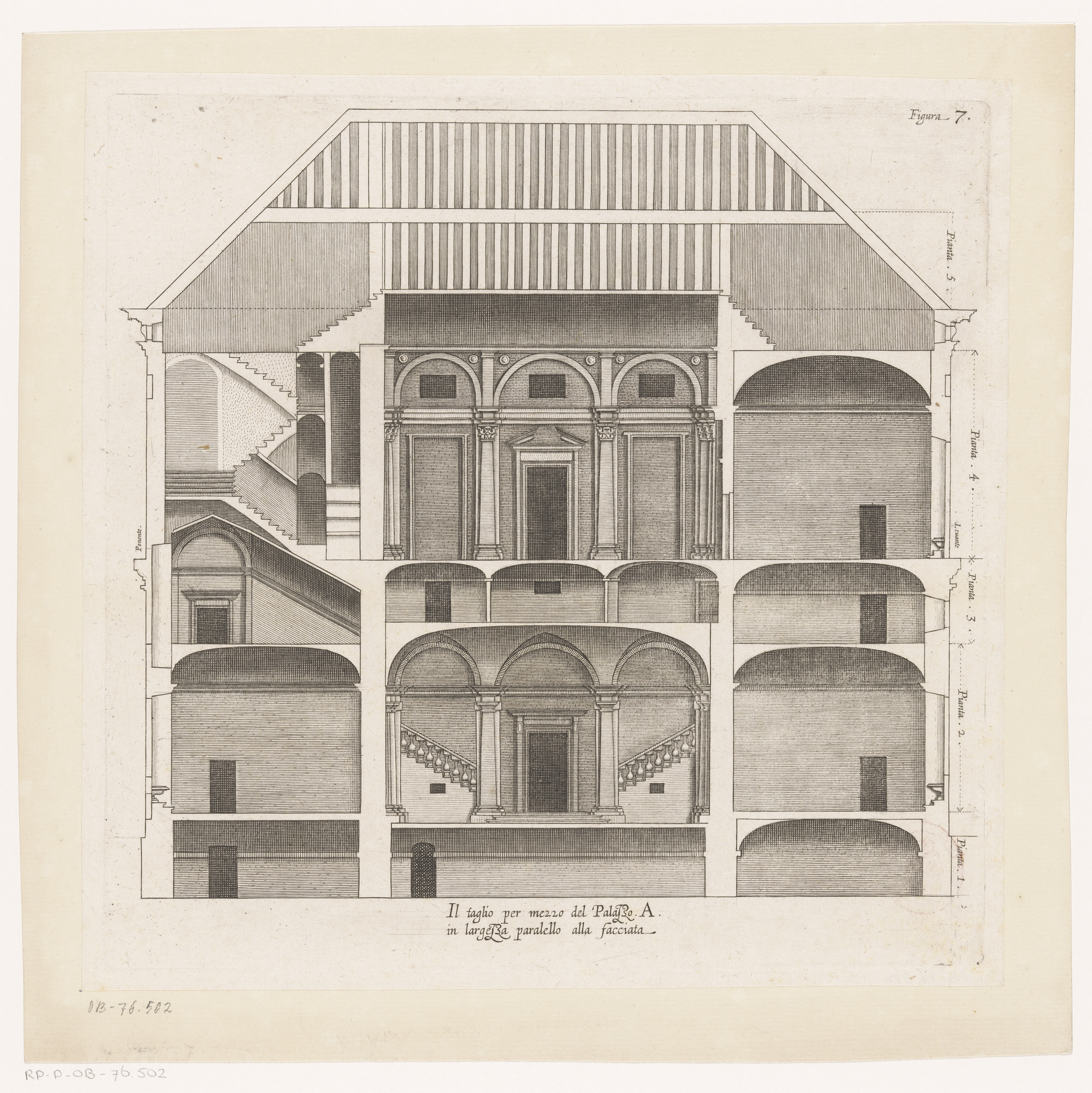 Dwarsdoorsnede van het Palazzo Interiano Pallavicini...