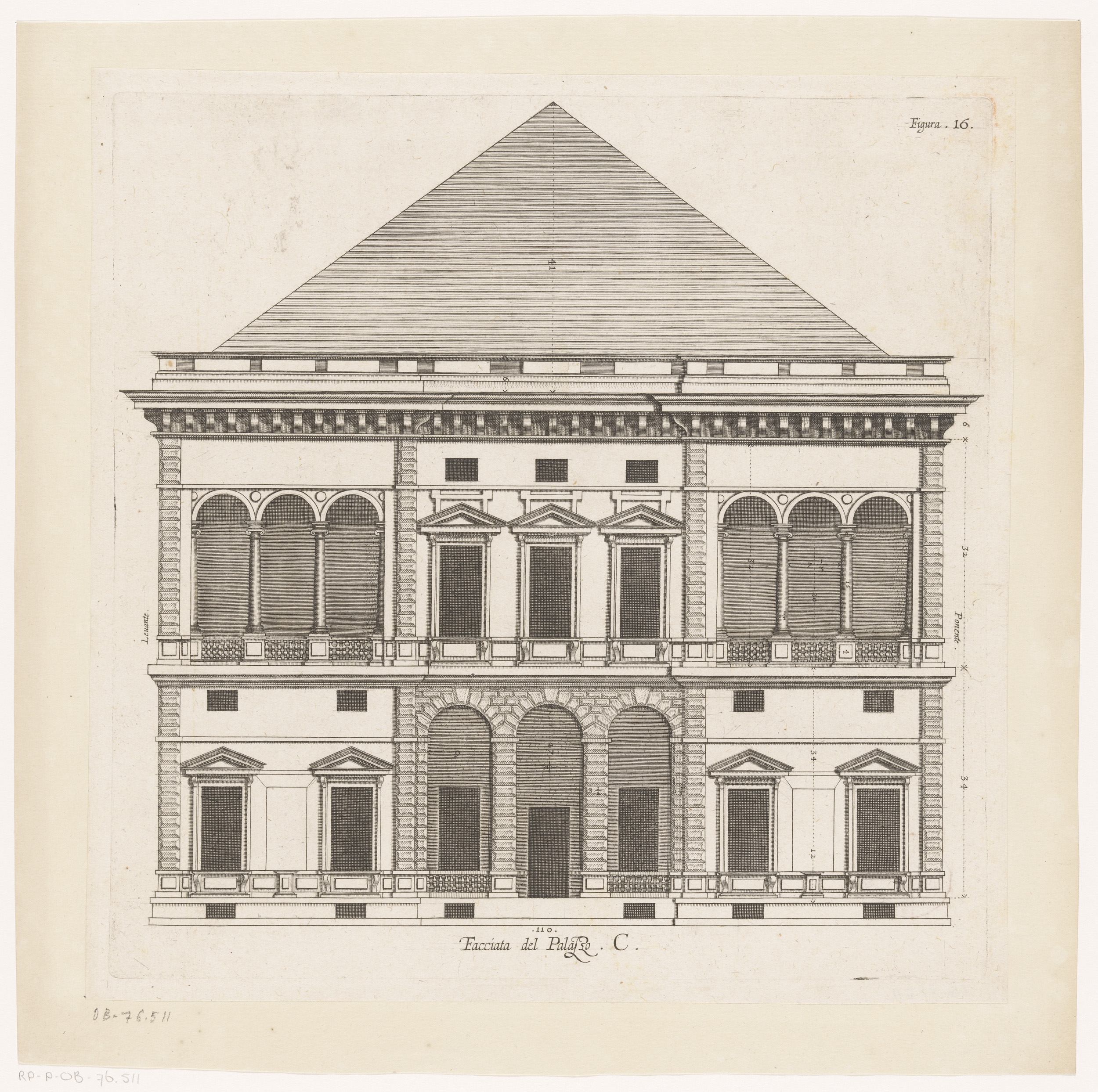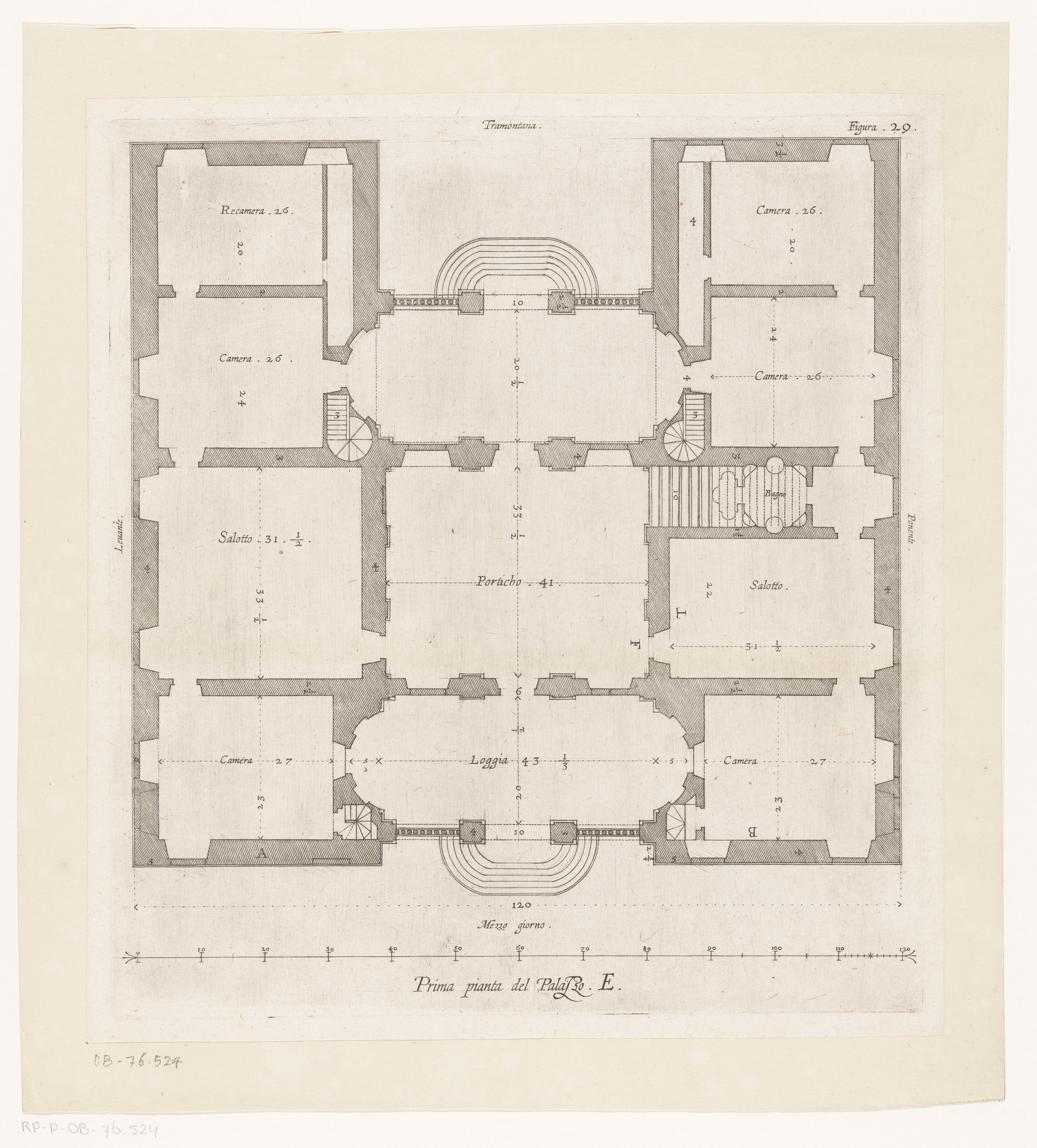 Plattegrond van de begane grond van het Palazzo Lerc...