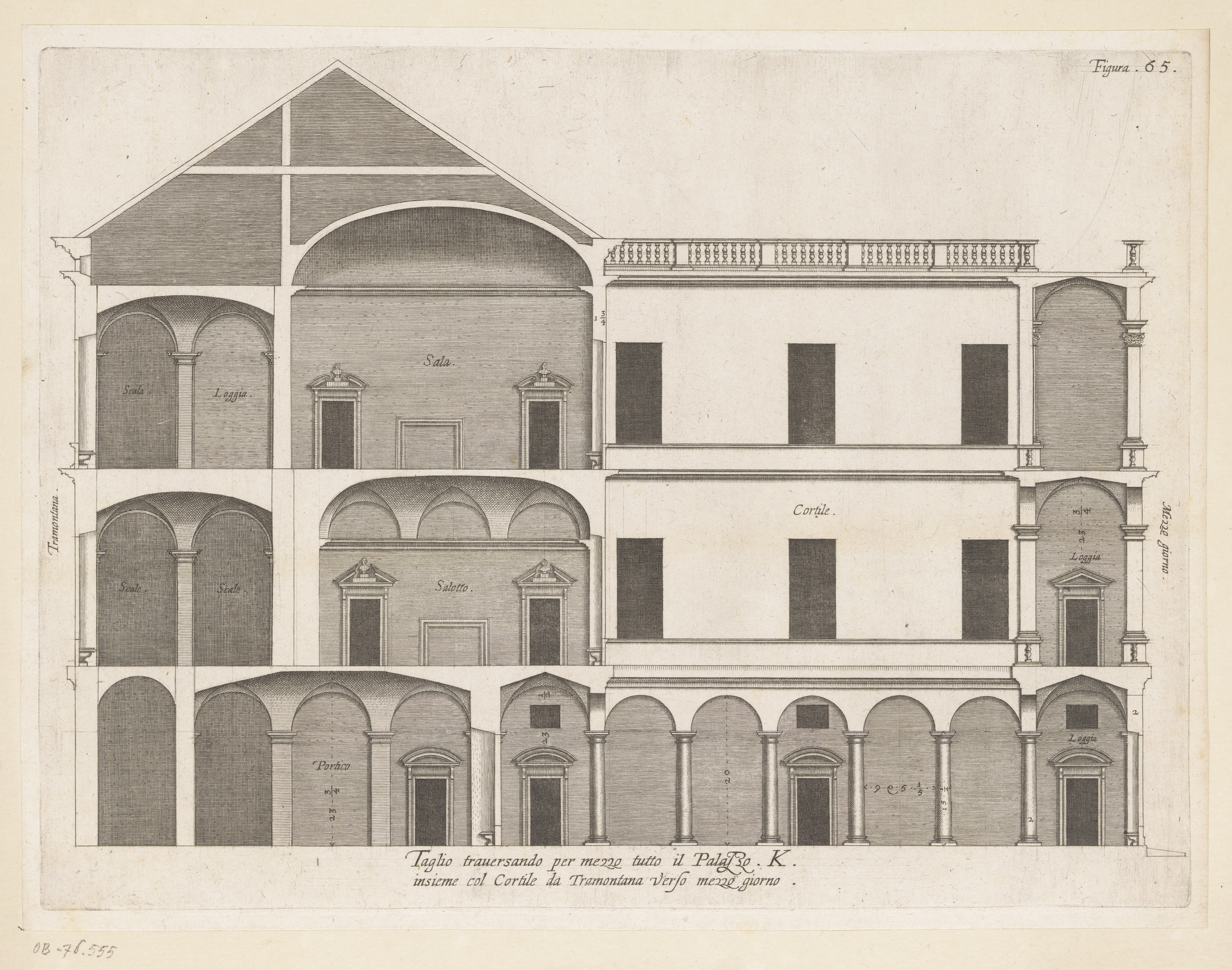 Dwarsdoorsnede van de Villa Grimaldi te Genua