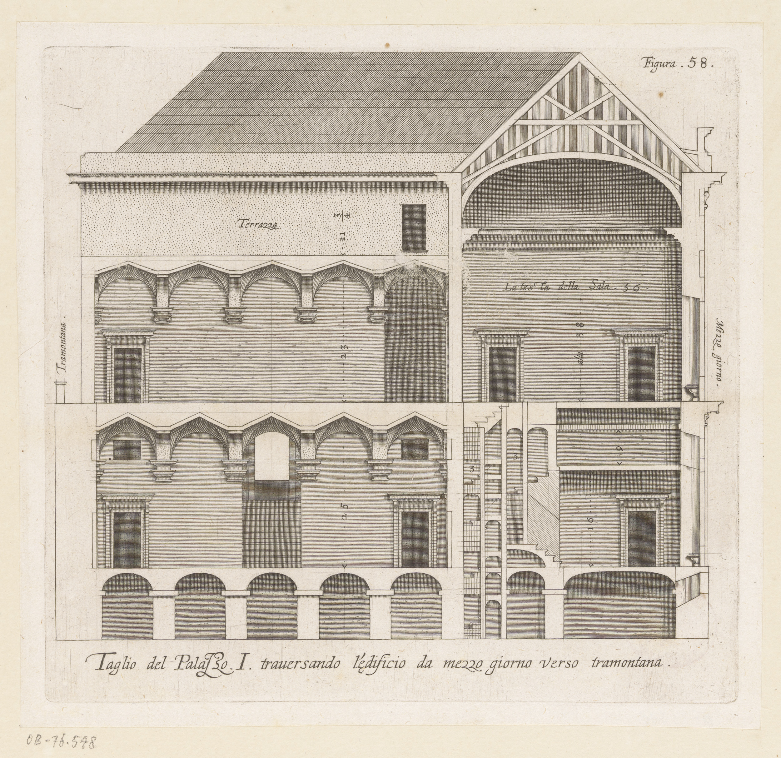 Langsdoorsnede van de villa Grimaldi te Genua