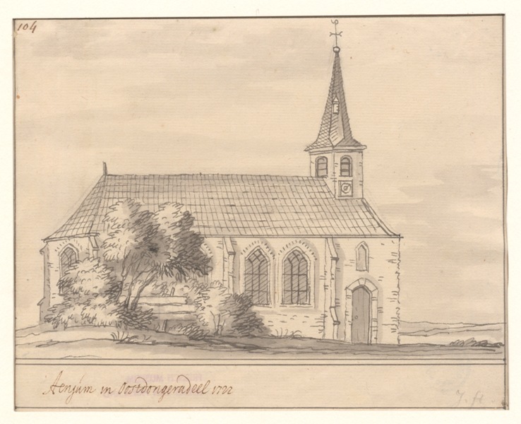 Gezicht op de kerk in het dorp Engwierum