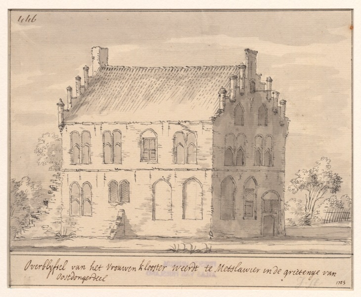 Gezicht op het overblijfsel van het vrouwenklooster ...