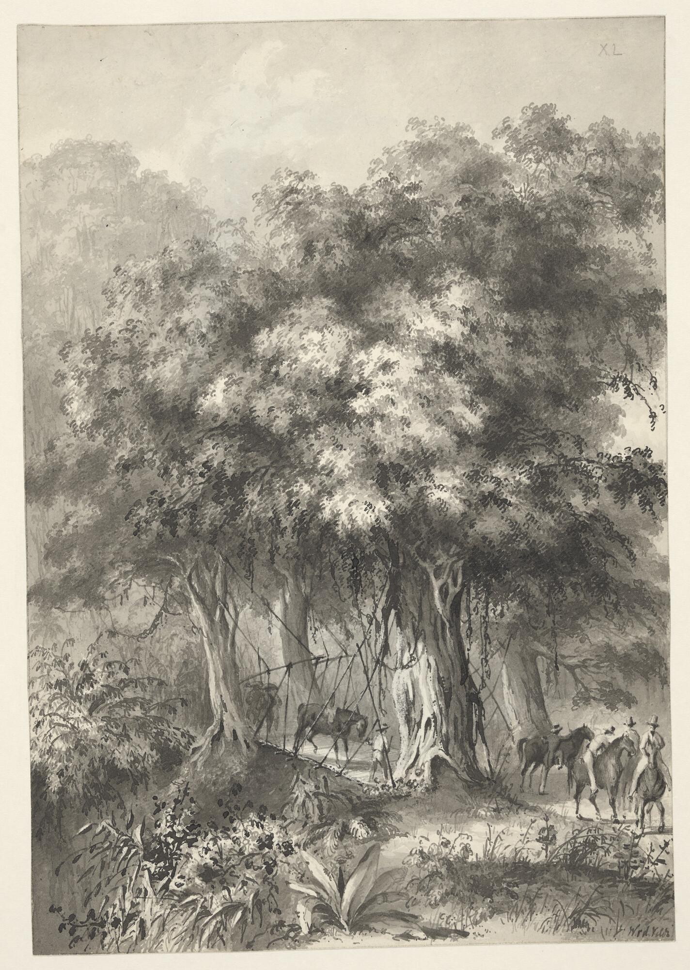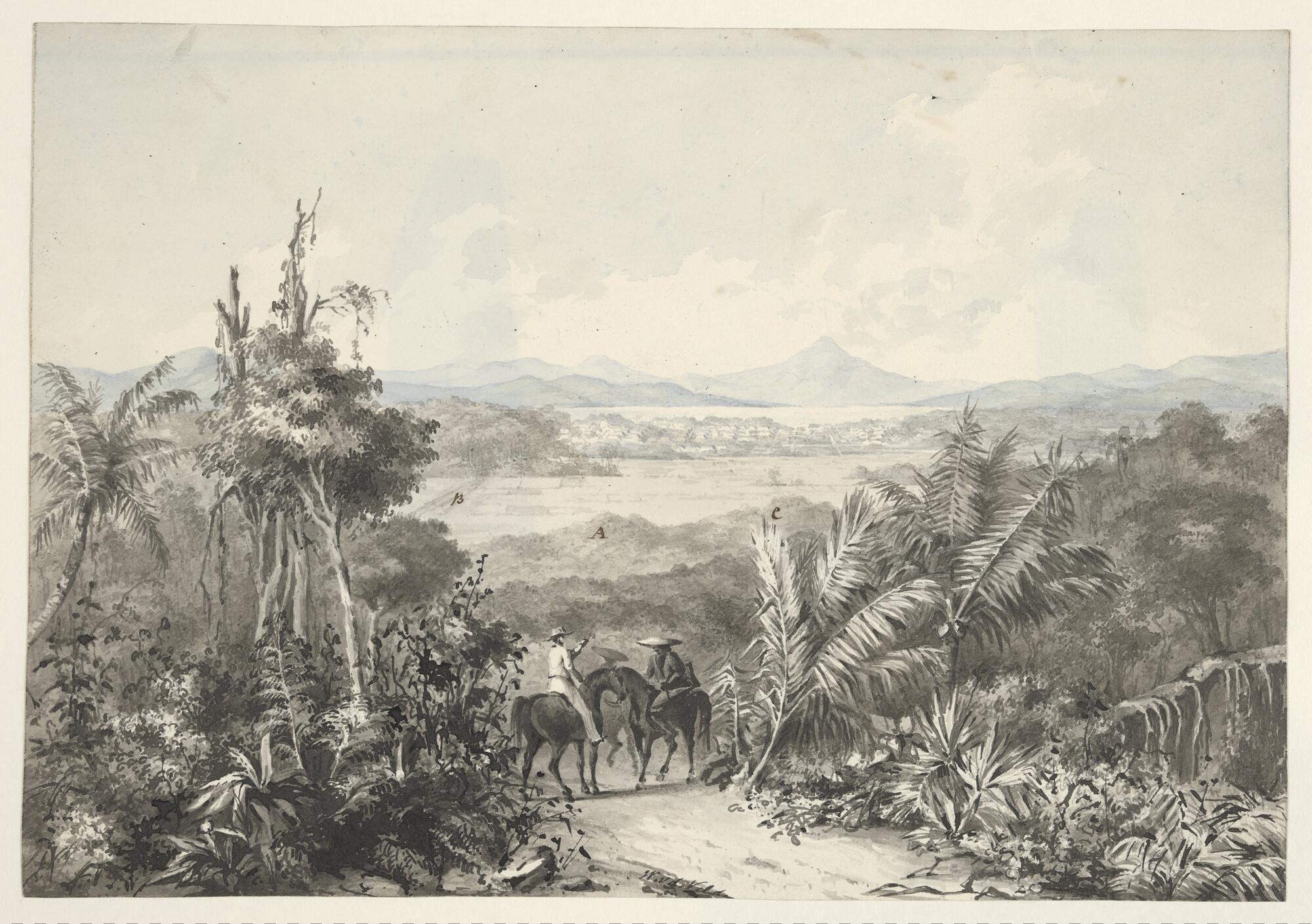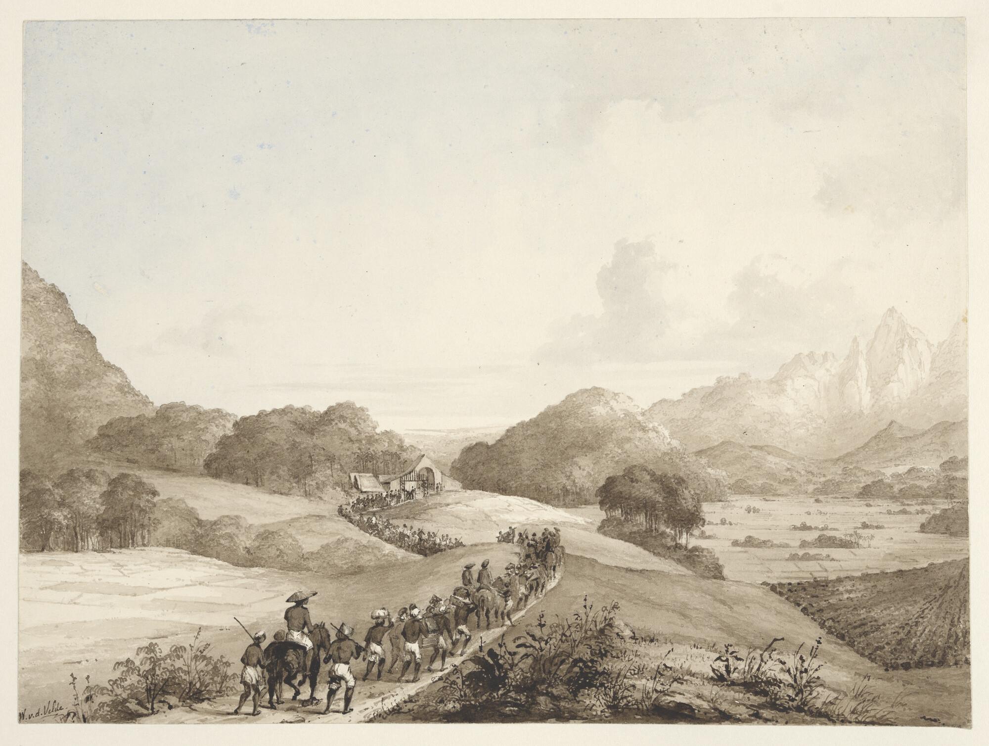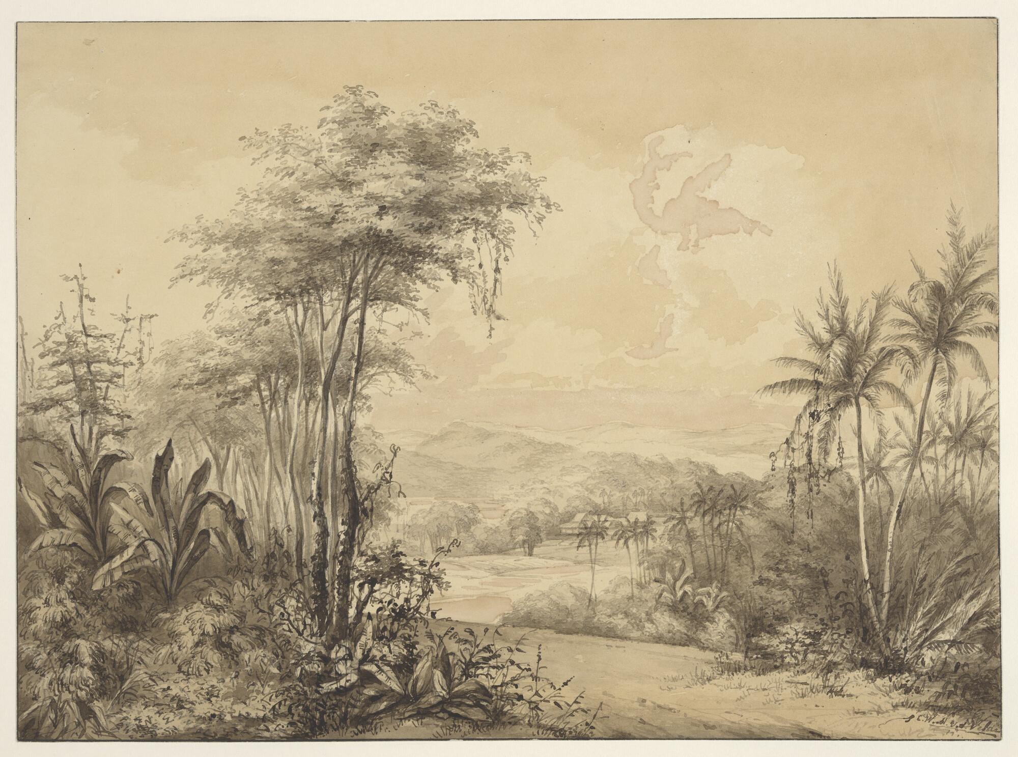 Gezicht op een vallei in Nederlands Indië