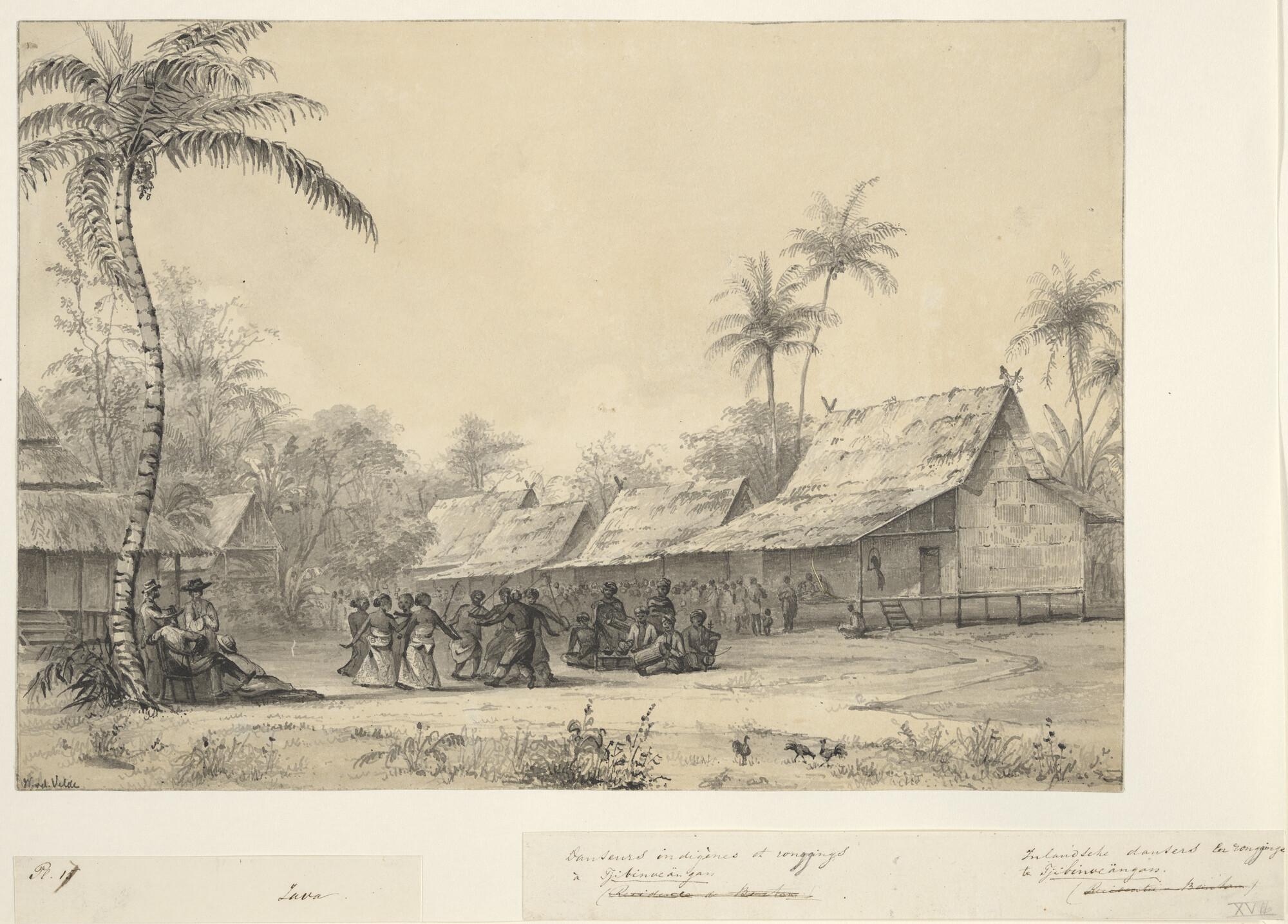 Dansers en muzikanten te Tjibinoeängan op Java