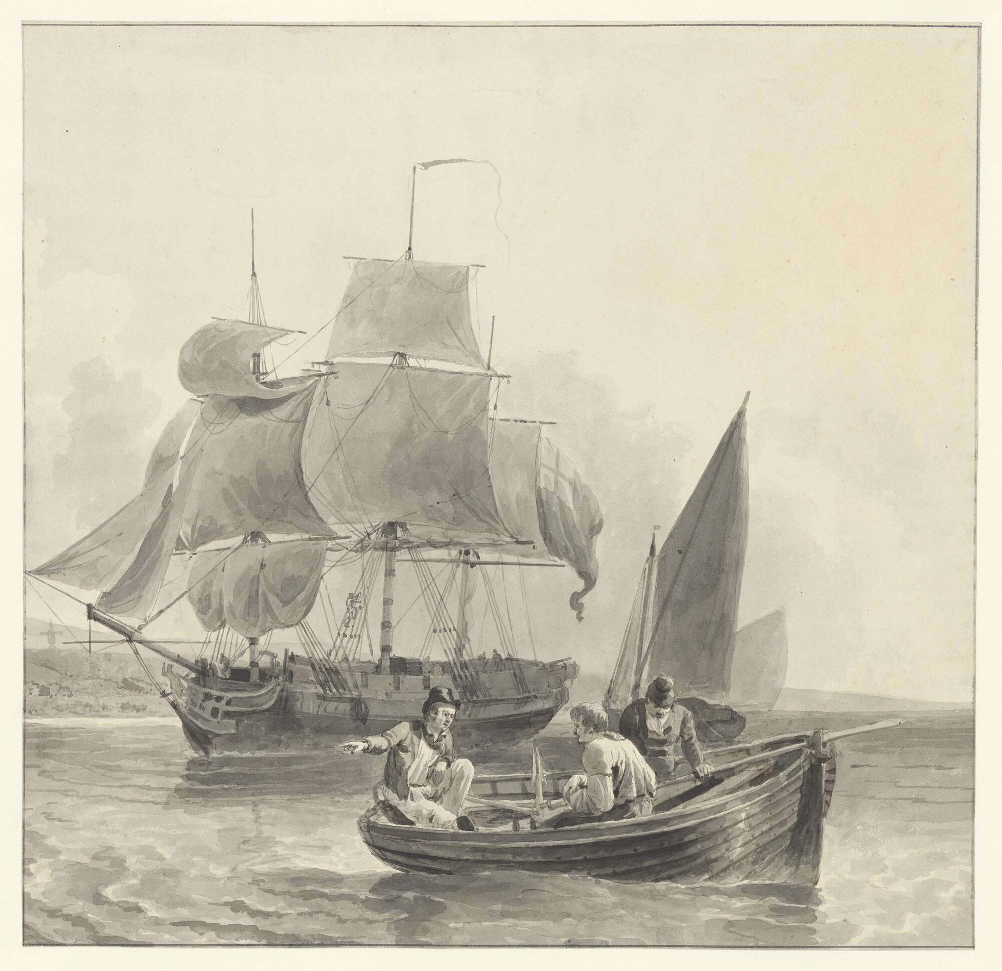 Een Engels fregatschip en een sloep