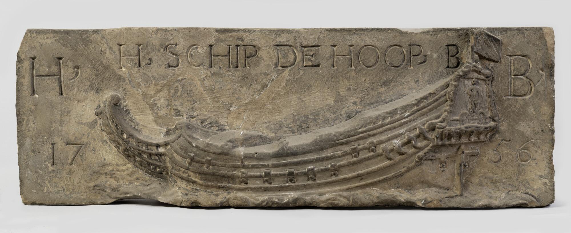 Gevelsteen met romp van zeeschip en opschrift: 'H Sc...