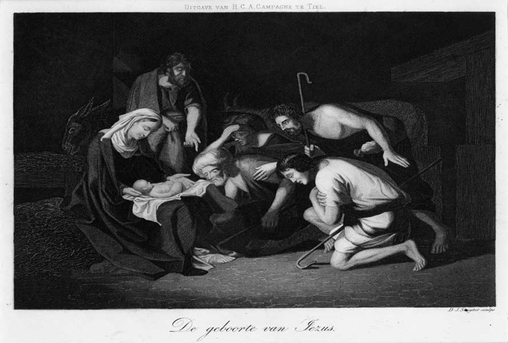 Gravure, voorstellende de geboorte van Jezus, vervaa...