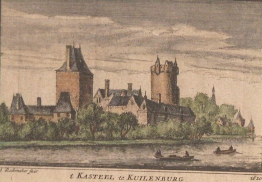 gravure, ingekleurd, voorstellende 't Kasteel te Kui...
