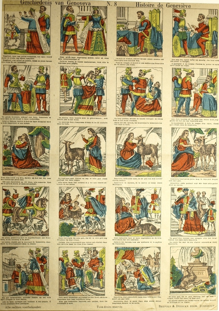 Centsprent met twintig gekleurde prentjes over de ge...