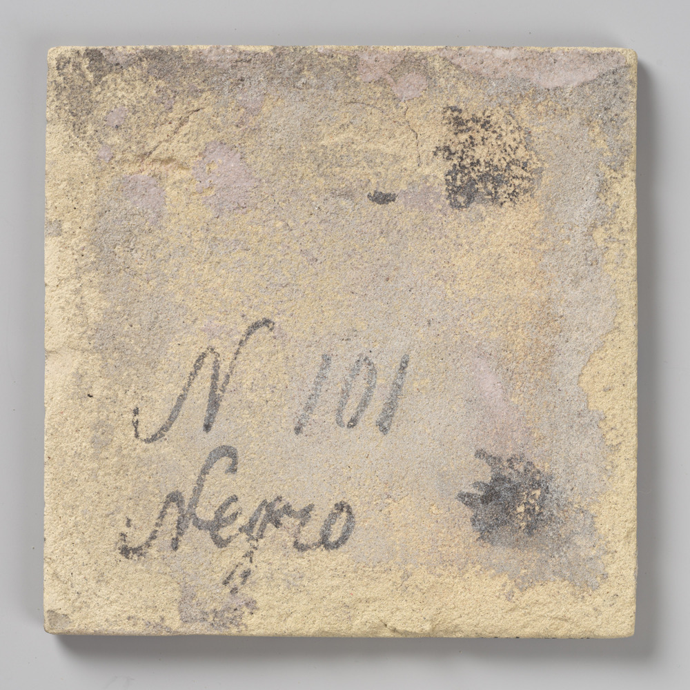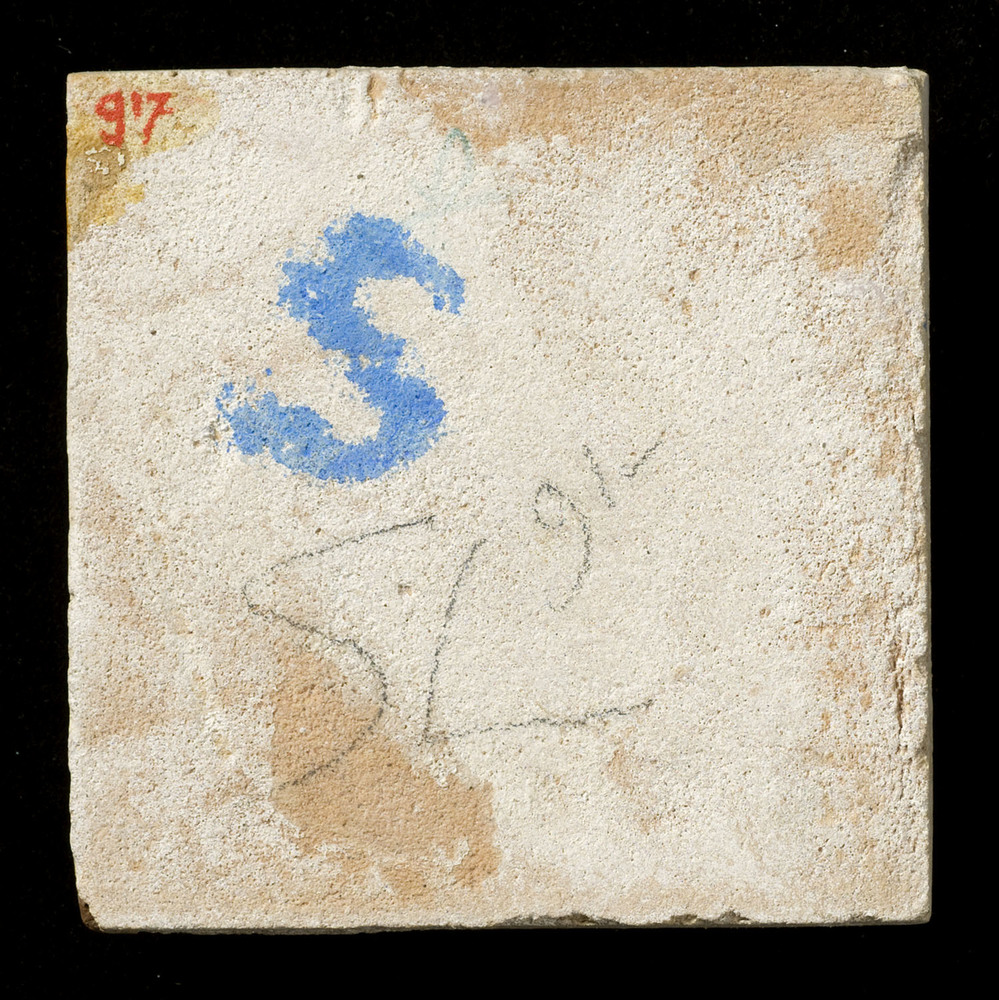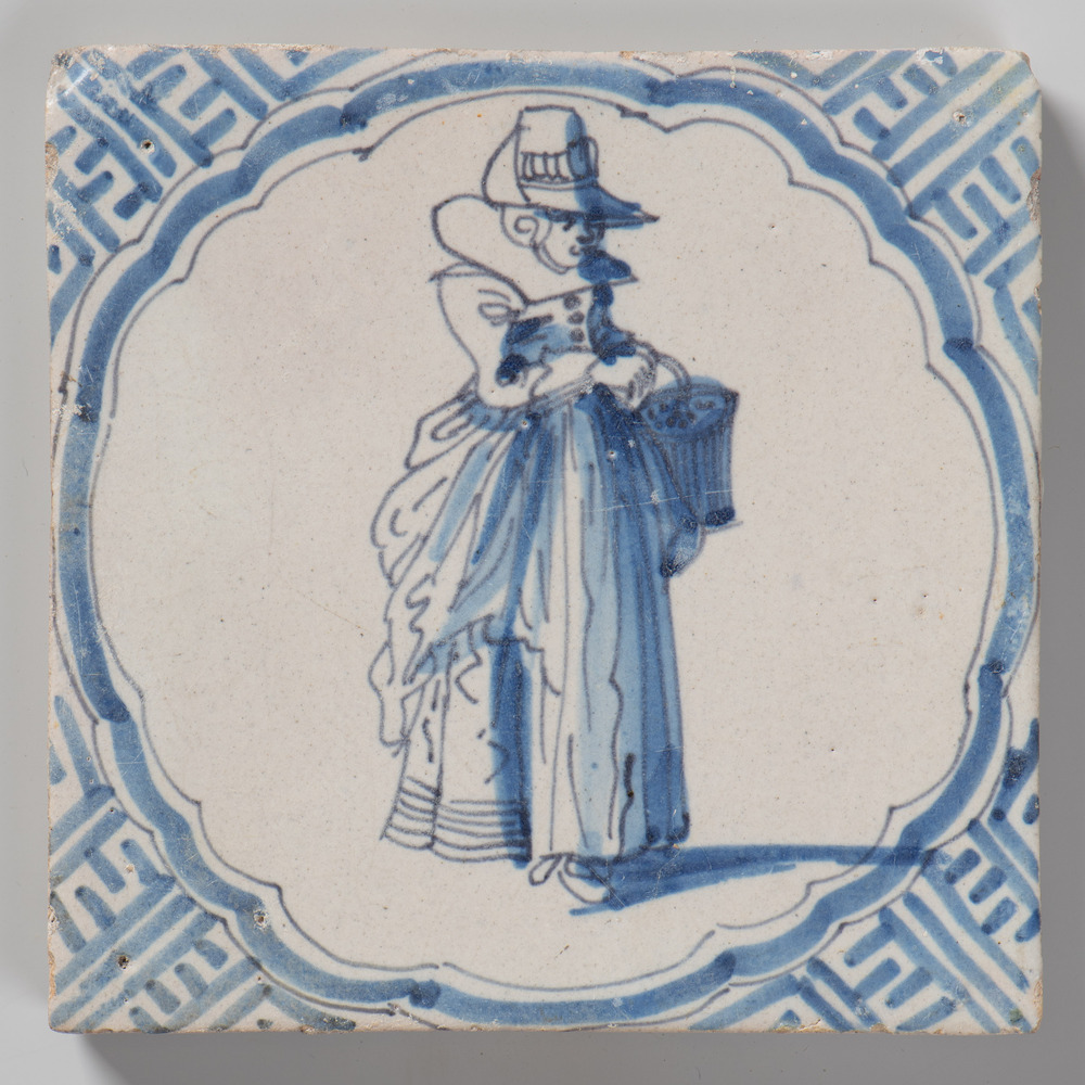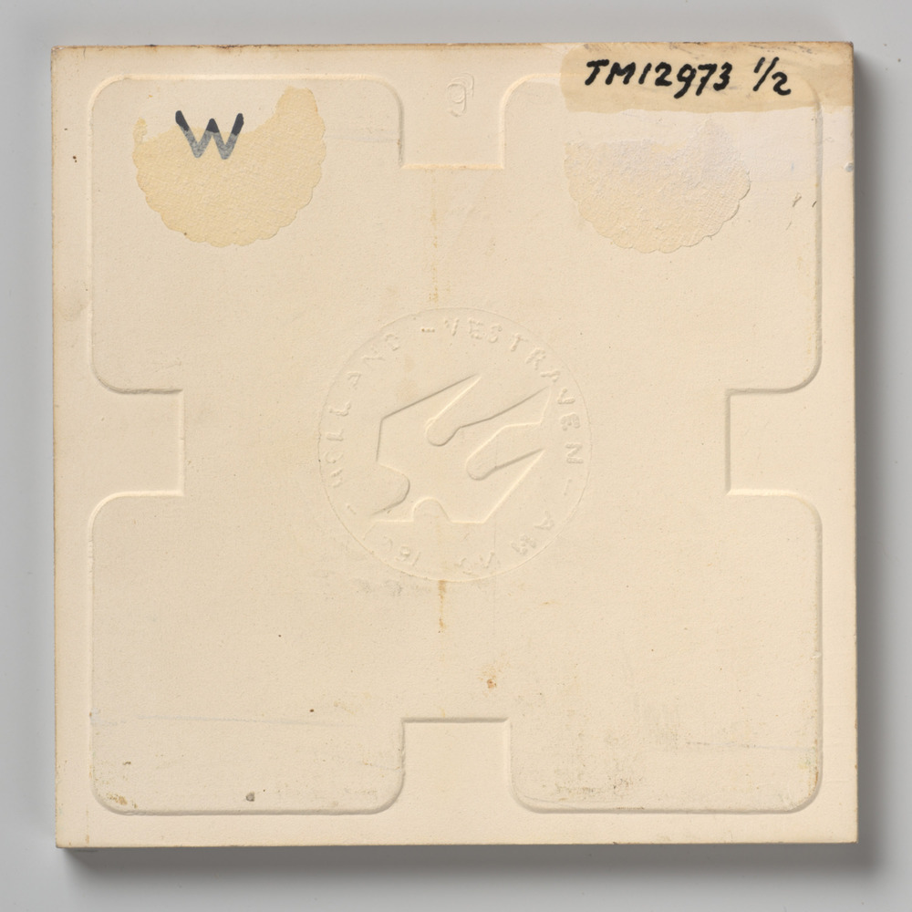 Tegel van keramiek met tinglazuur, voorstellende: wa...