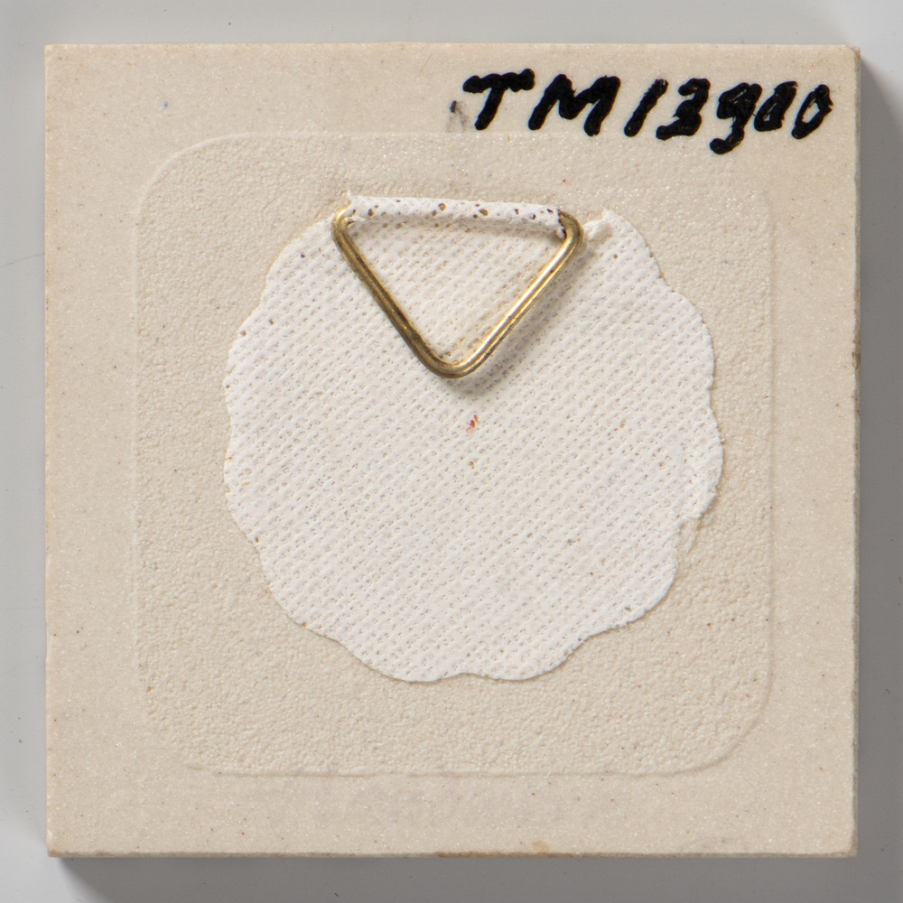 tegel van keramiek, deels gesjabloneerd op een gespr...
