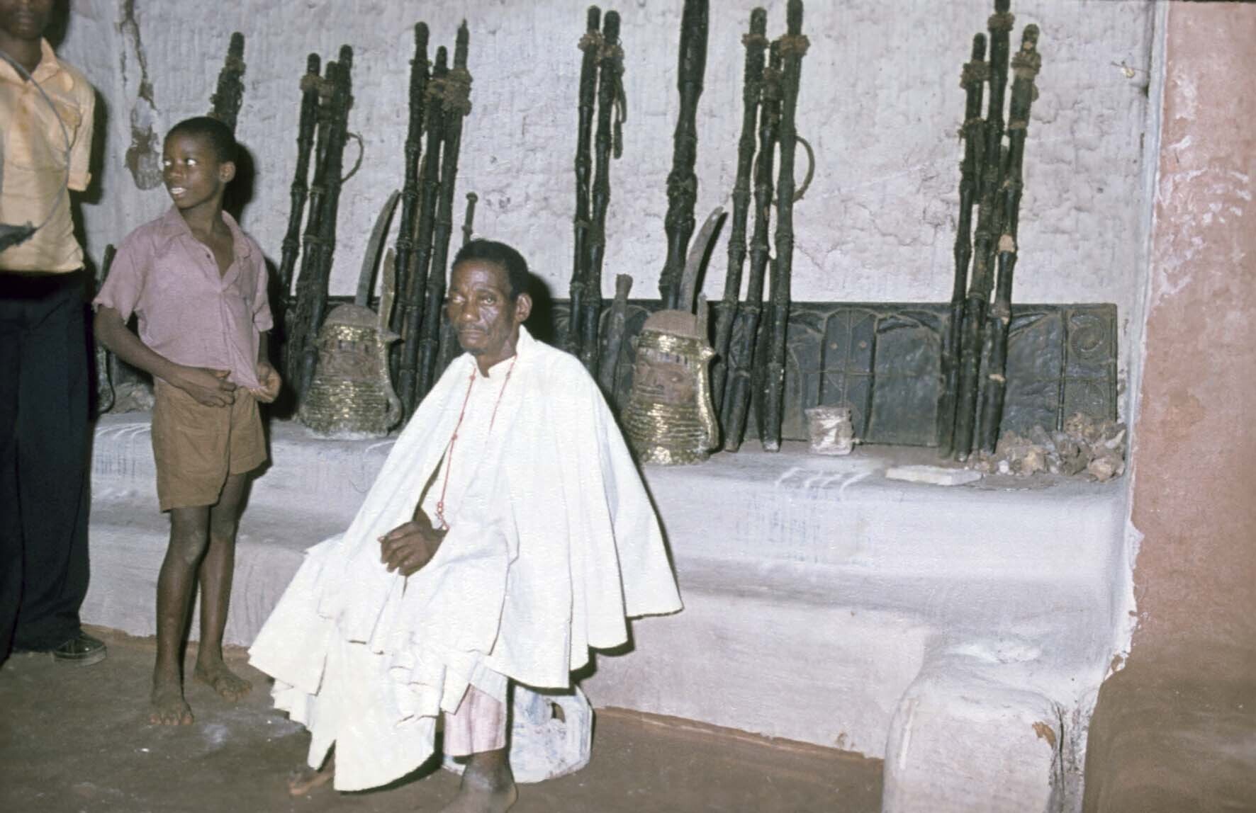 'De Oba (chief) van Aran-Orin op zijn praalbed'