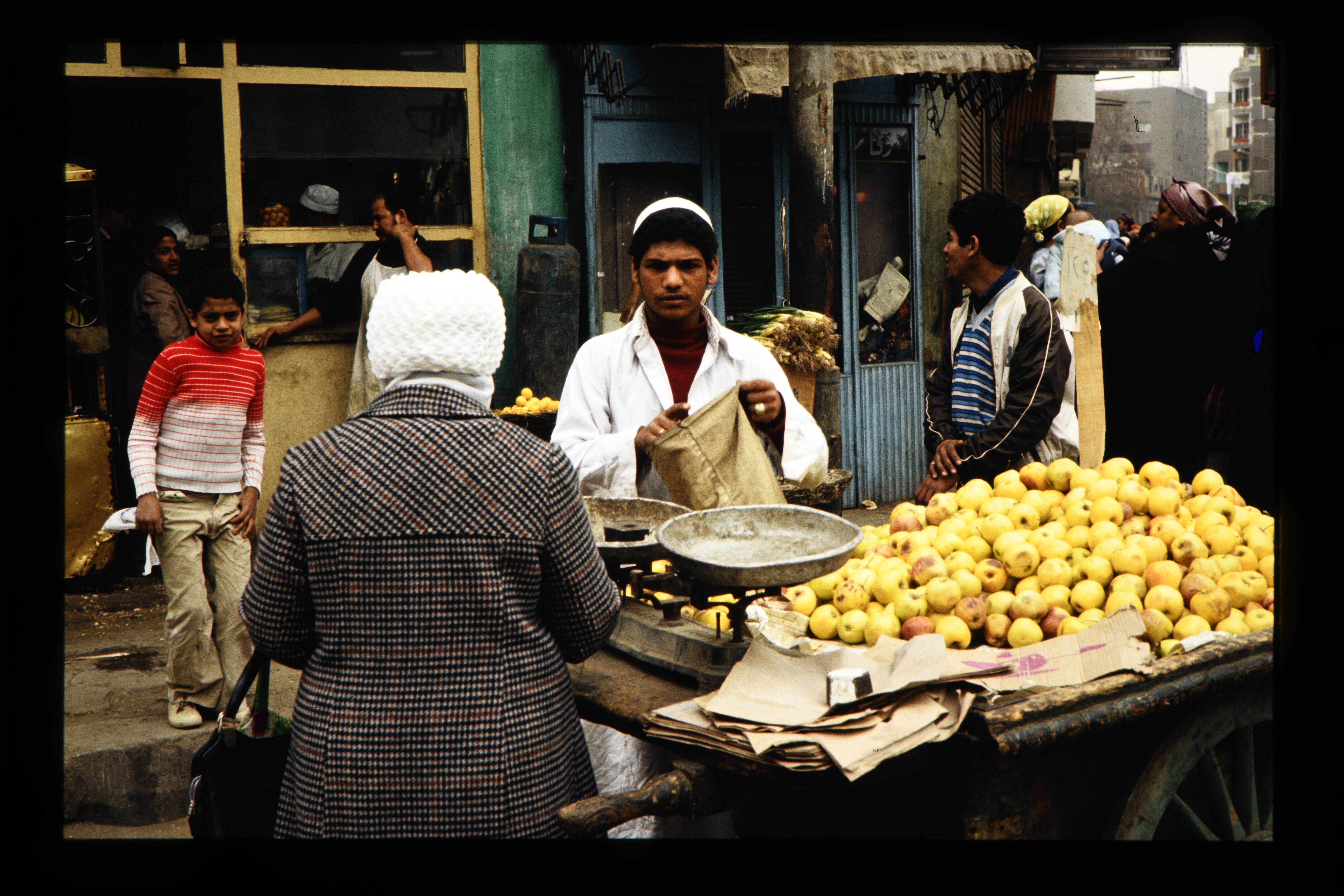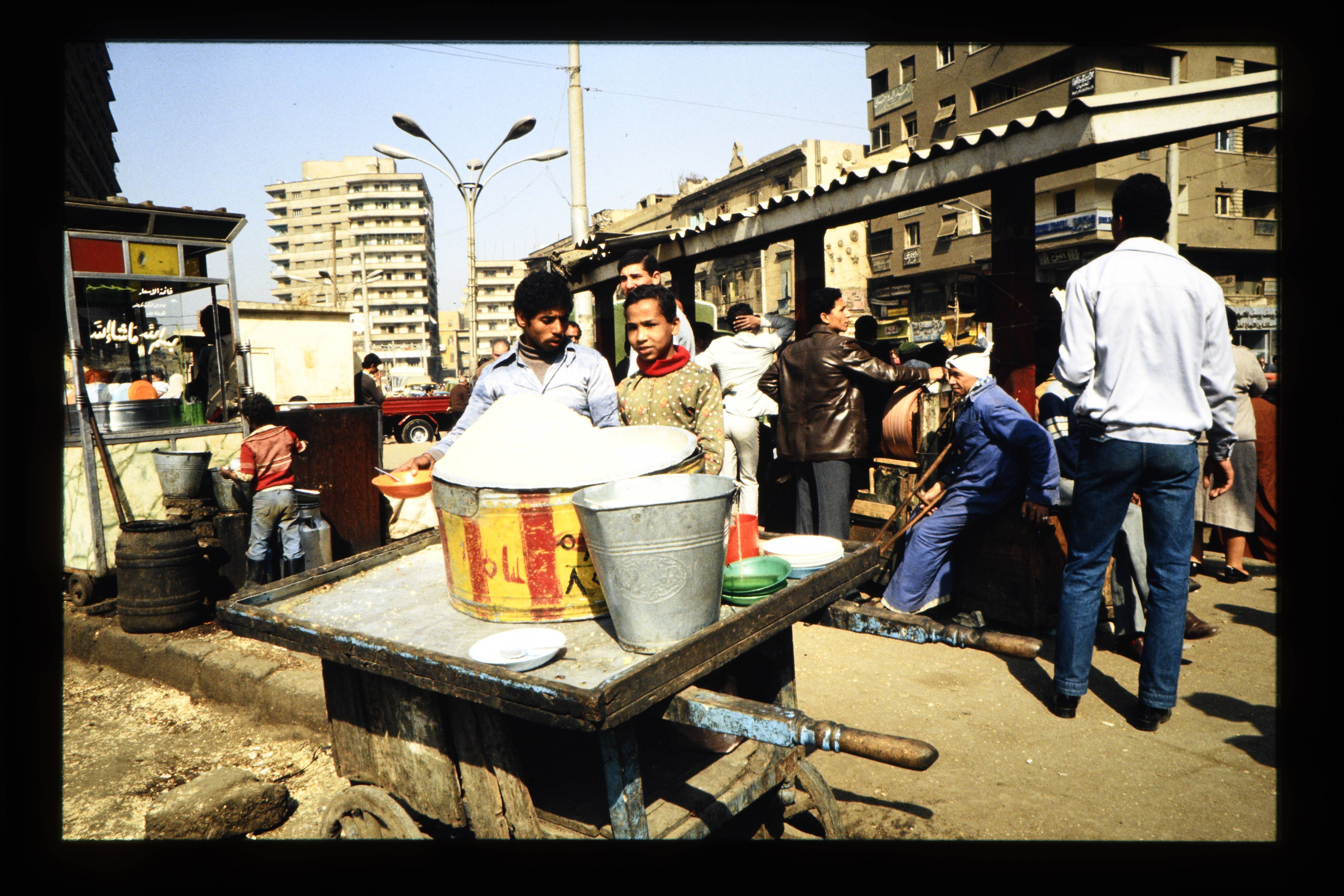 'Jongens verkopen couscous bij een busstation. Caïro. '