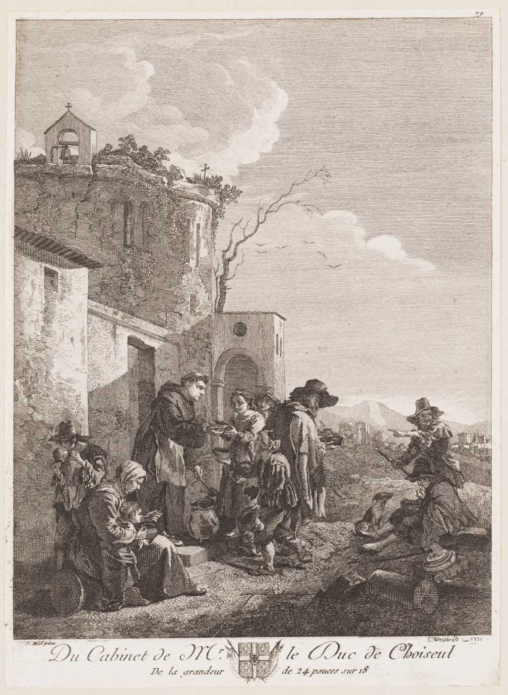 Een monnik, de armen verzorgend