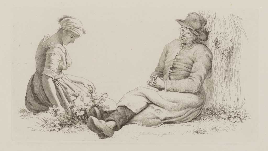 Landschap met rustende mensen en vee