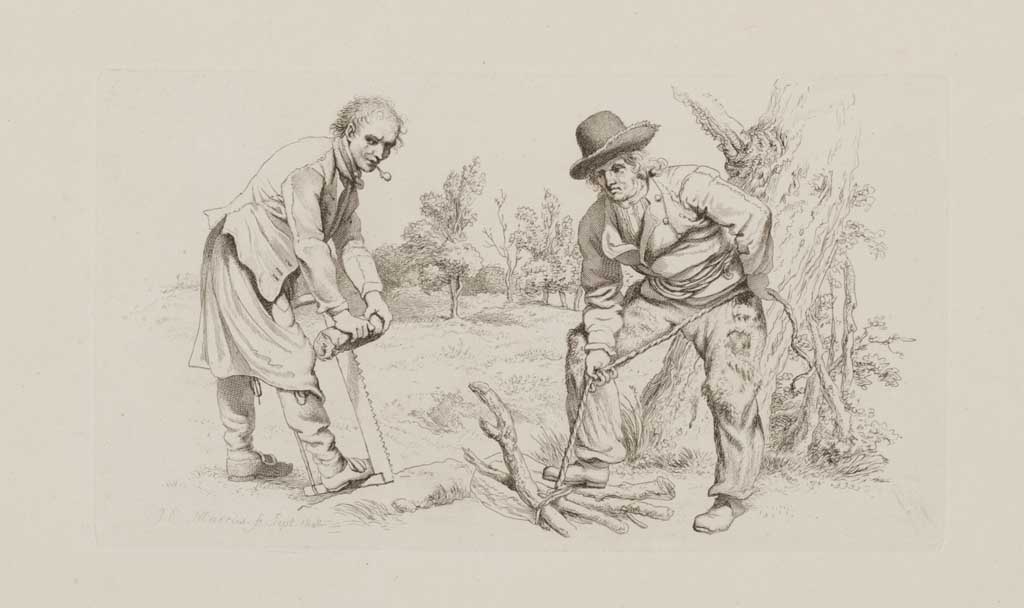 Bosgezicht met boeren