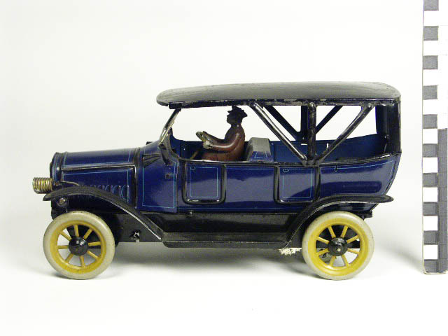 Auto van bedrukt blik met chauffeur