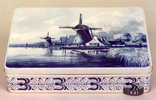 Trommel voor VERDUIN met molendecor,in Delftsblauw