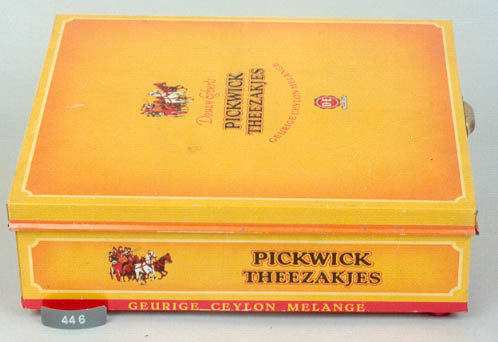 Gele trommel voor PICKWICK theezakjes van DOUWE EGBERTS