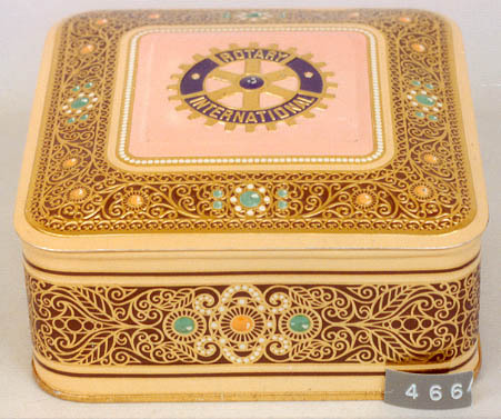 ROTAR;Gouden trommel met reliefversiering in bruin e...