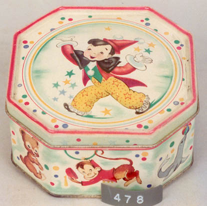 CIRKU;wit 8-kantig kindertrommeltje met circusmotieven
