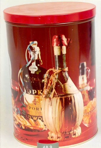 ongedecoreerde blanke koektrommel met los deksel.
