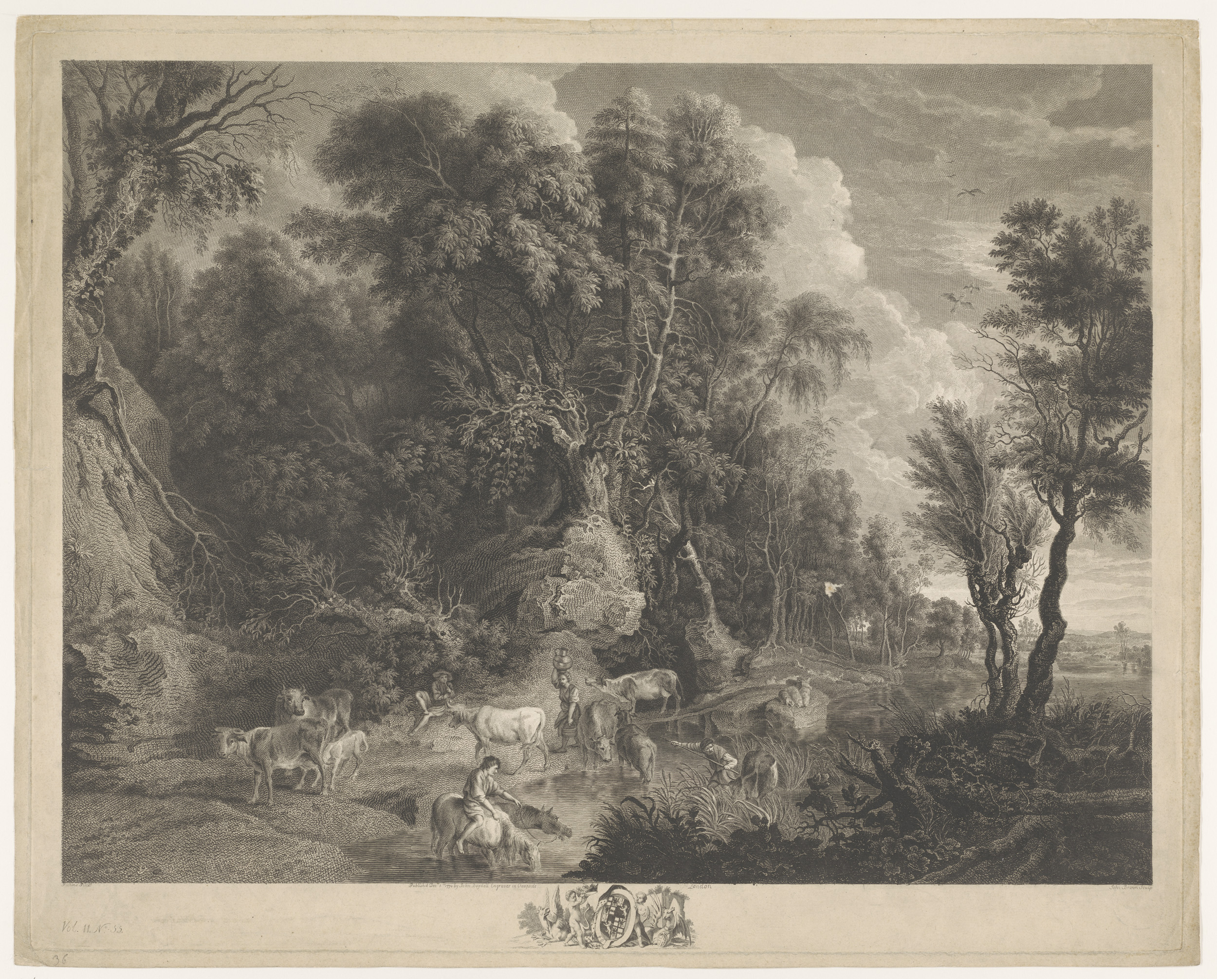 Landschap met herders en kudde bij een drinkplaats