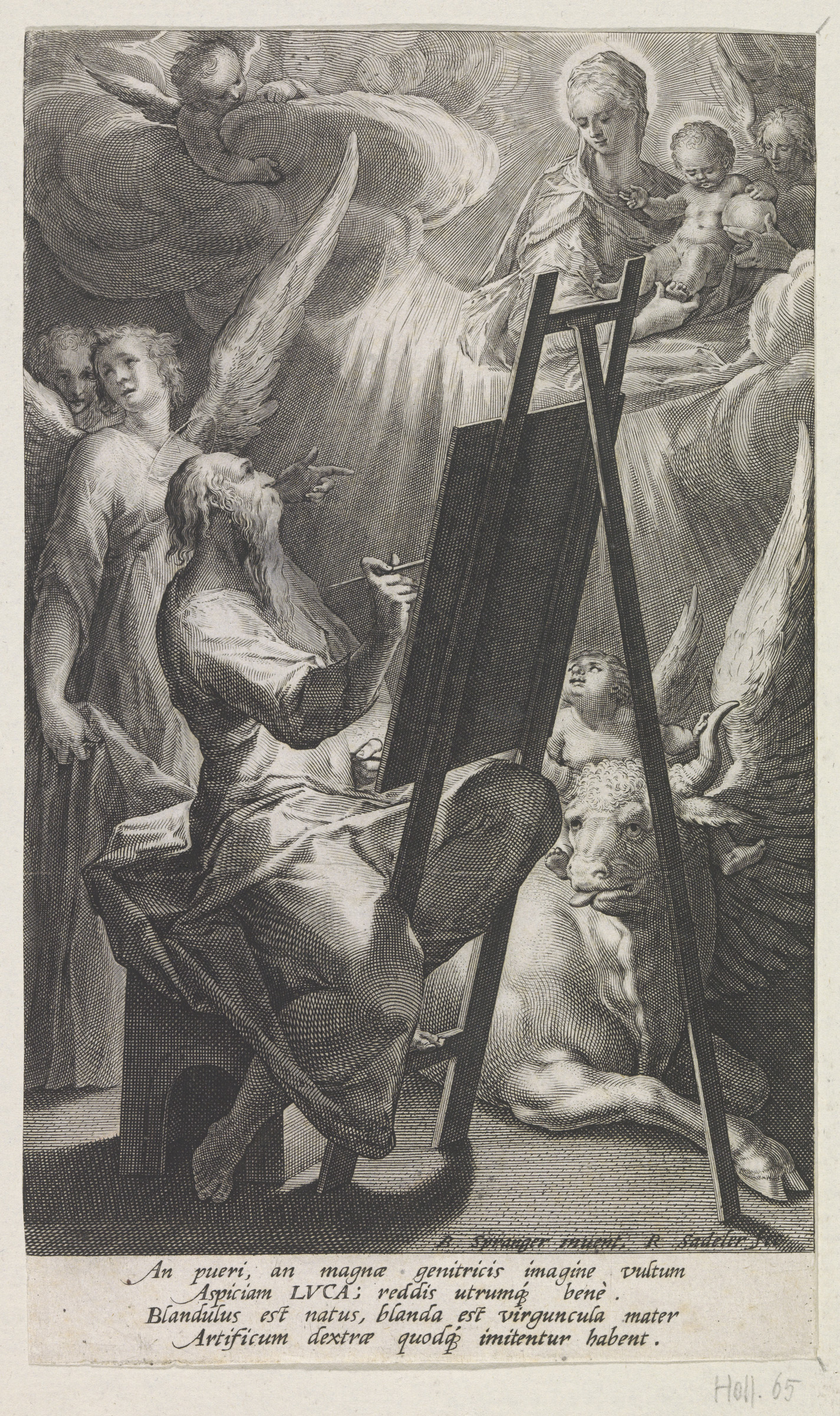 Lucas de Evangelist schildert Maria met het Christus...