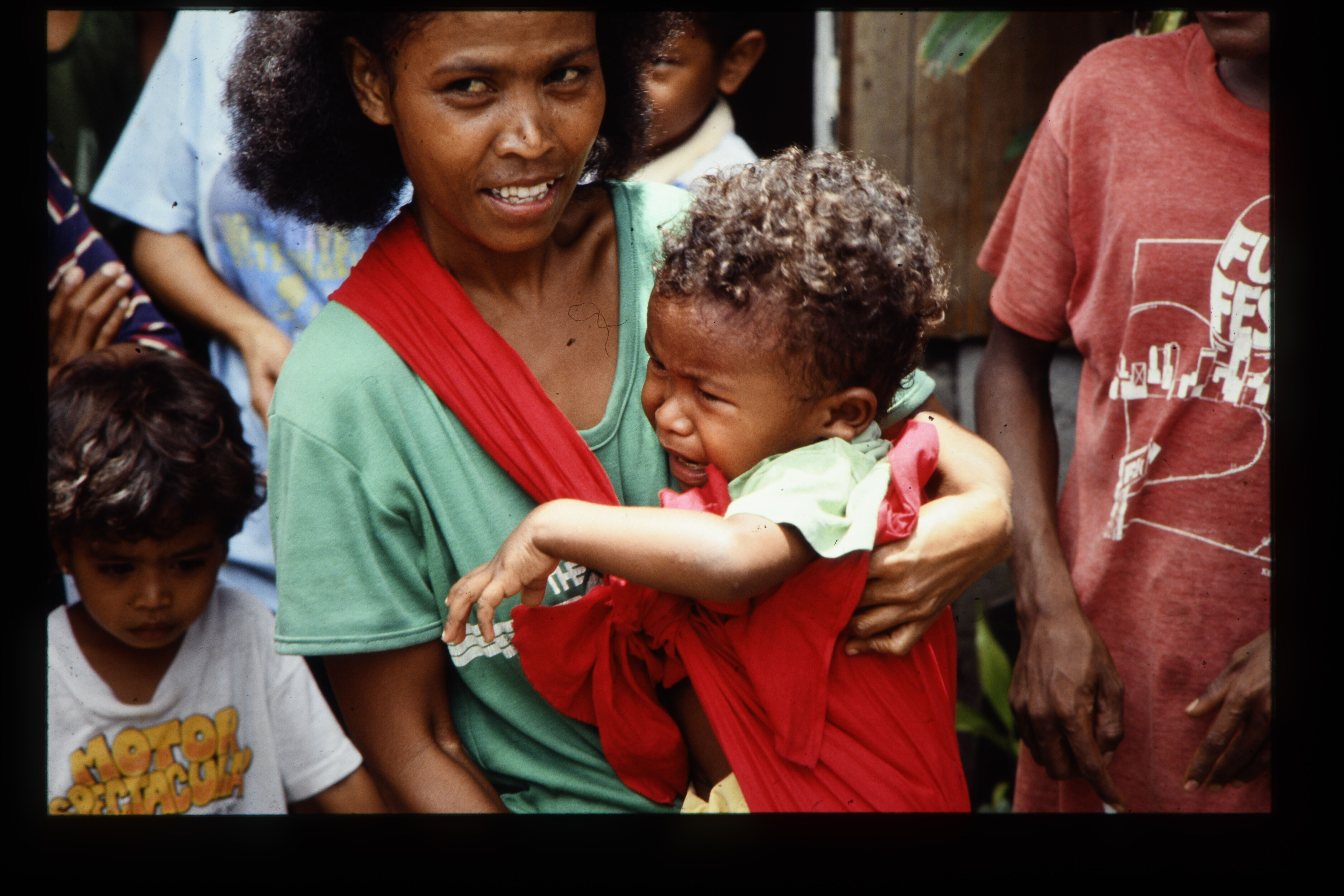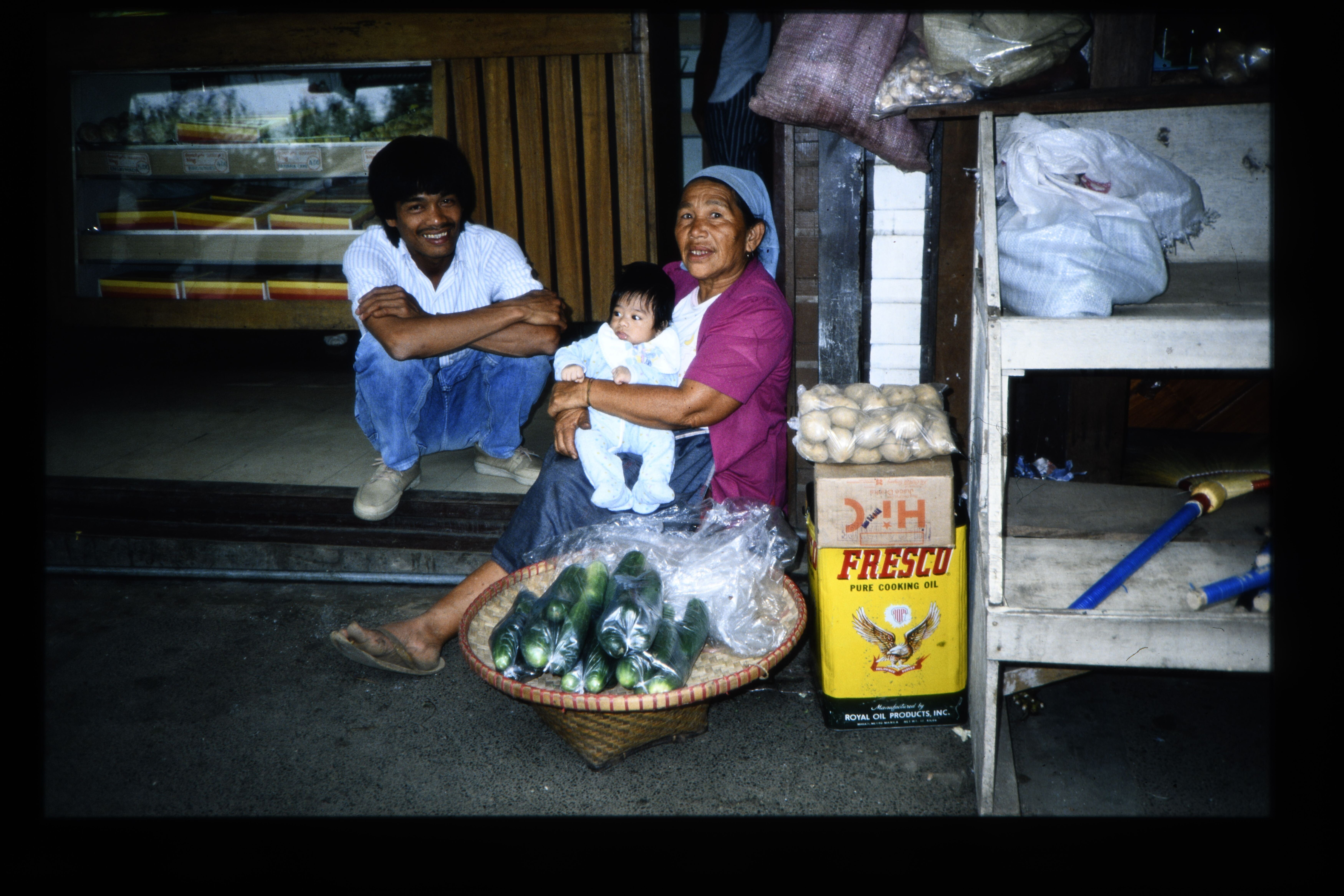 'Vrouw met baby op schoot verkoopt komkommers en aar...