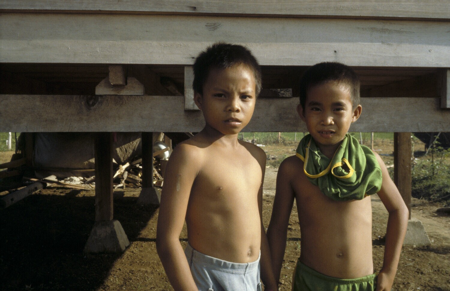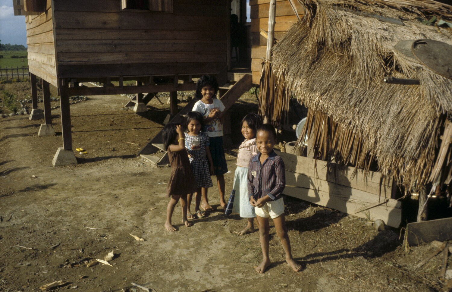 Kinderen bij een projekthuis. Luwu, Sulawesi.