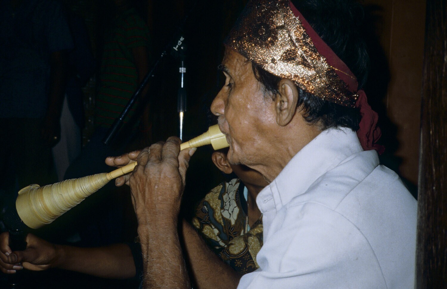 Fluitspeler op een bamboe fluit begeleidt een Ngutnu...
