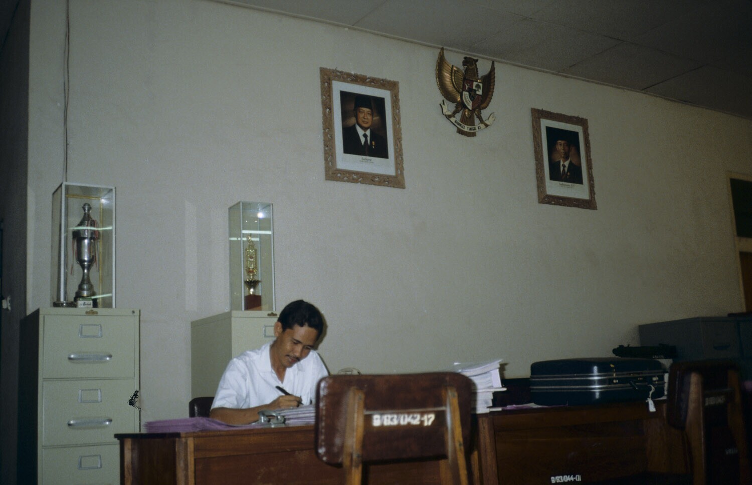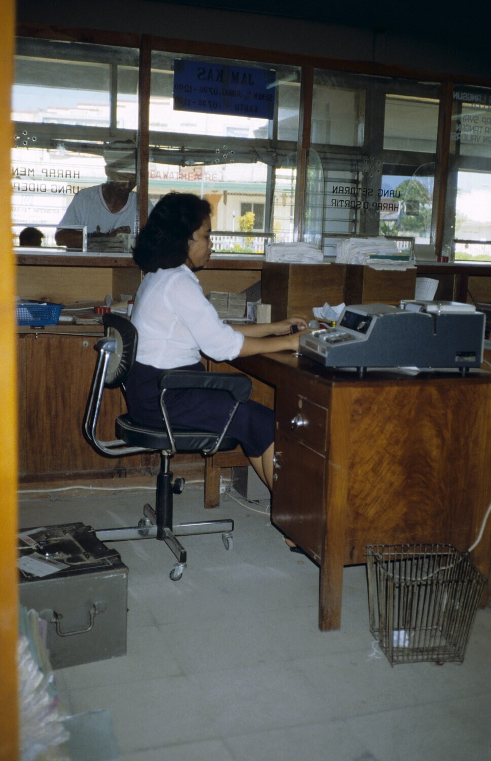 De bank Rakayat Indonesia. Interieur. Kota Sumbawa.